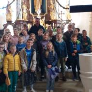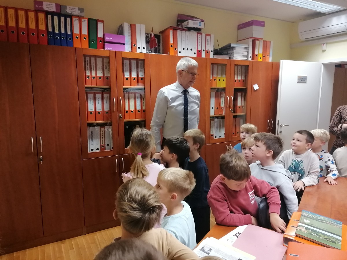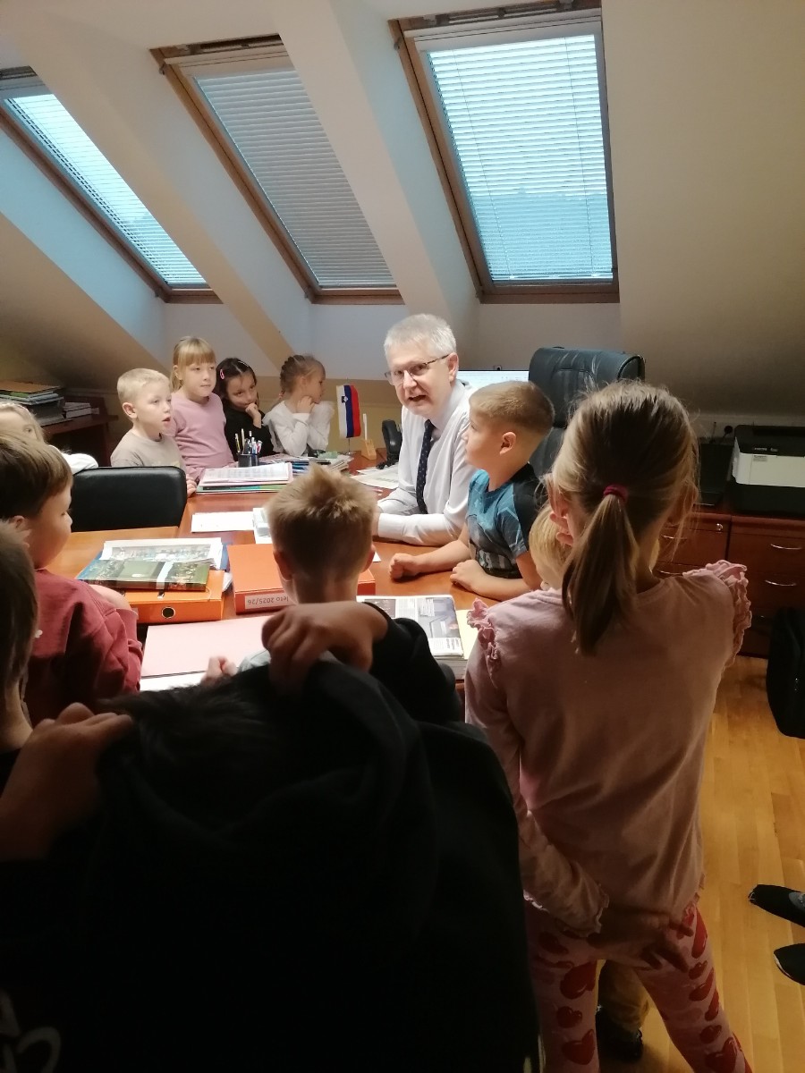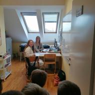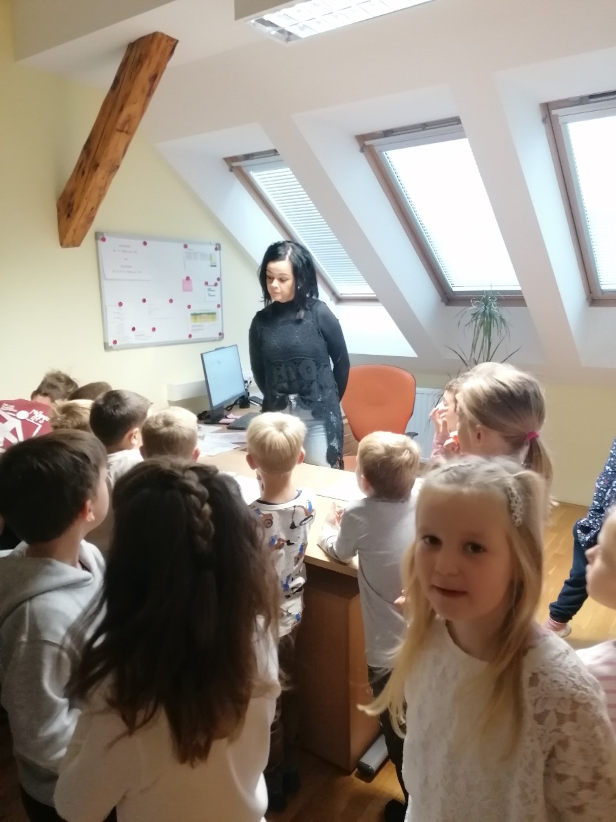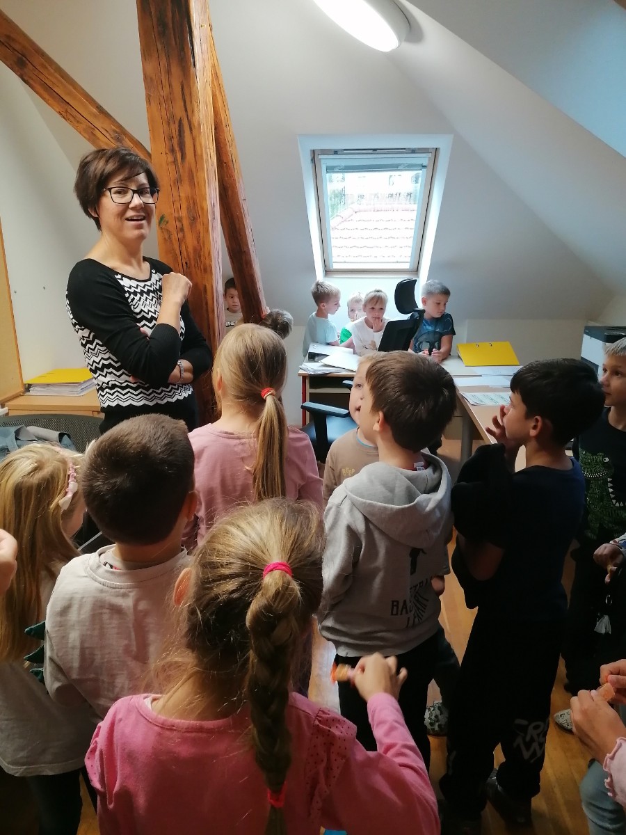 Prvošolci pri urah spoznavanja okolja trenutno spoznavajo našo šolo, zato smo se odpravili na ogled. Pričeli smo najvišje, kjer je pisarna gospoda ravnatelja. Ta je bil našega obiska zelo vesel, prav tako tudi učenci, saj je odgovoril na vsa njihova vprašanja. Spoznali smo tudi delo tajnice Vesne, pomočnice ravnatelja učiteljice Simone, pokukali v kabinet k učiteljici Anuški ter učiteljici Sanji ter si ogledali zbornico, kjer se zbiramo učitelji in se pripravljamo na delo. Učenci so ta prostor po svoje poimenovali zbiralnica. Zavili smo tudi v računalniško učilnico k učitelju Daniju, v računovodstvo ter si ogledali še učilnice za geografijo, gospodinjstvo, glasbo, tehniko itd. Seveda nismo mogli mimo kleti, kamor učenci le redko zaidejo in ki skriva veliko zanimivih stvari.