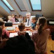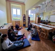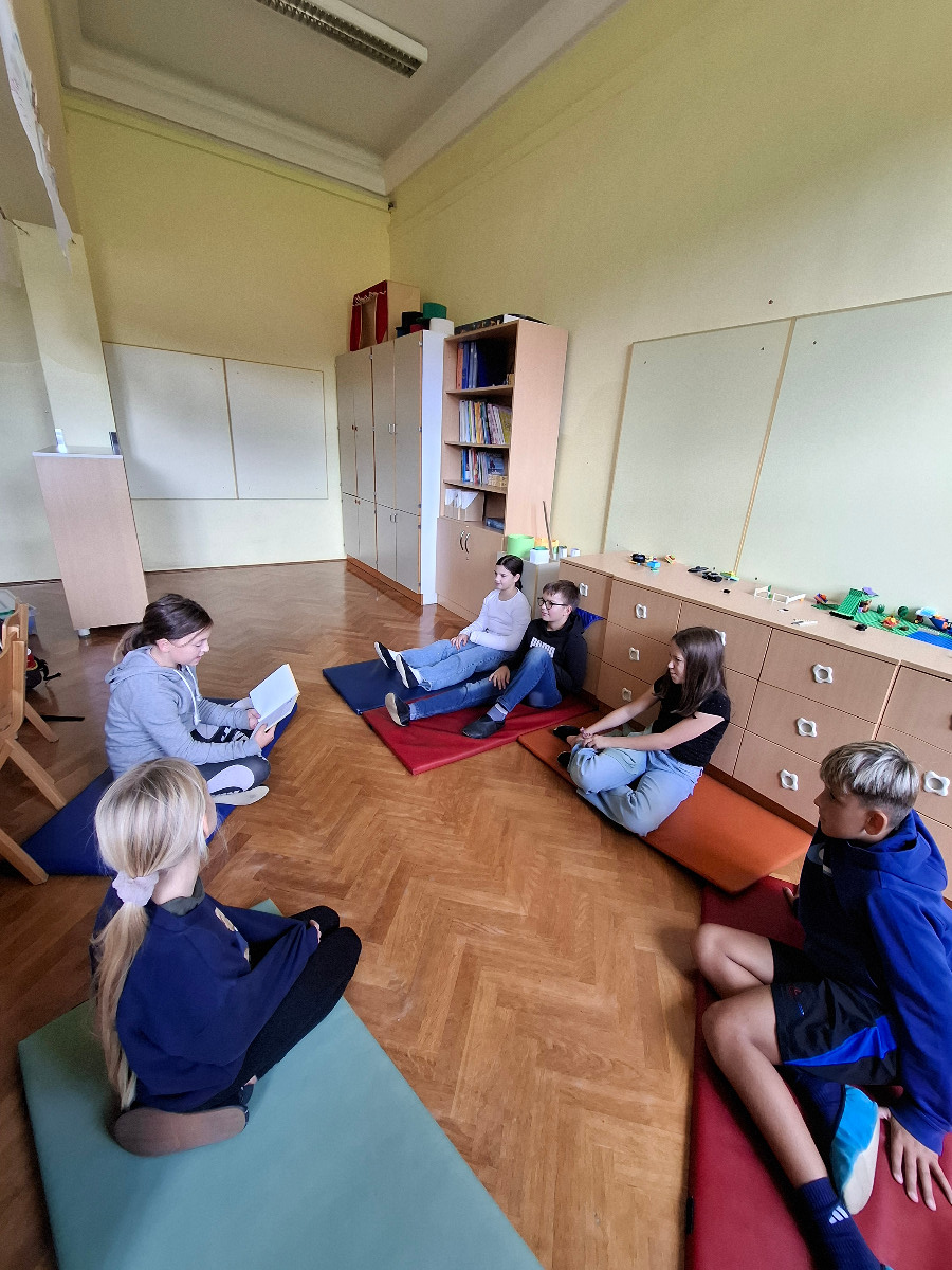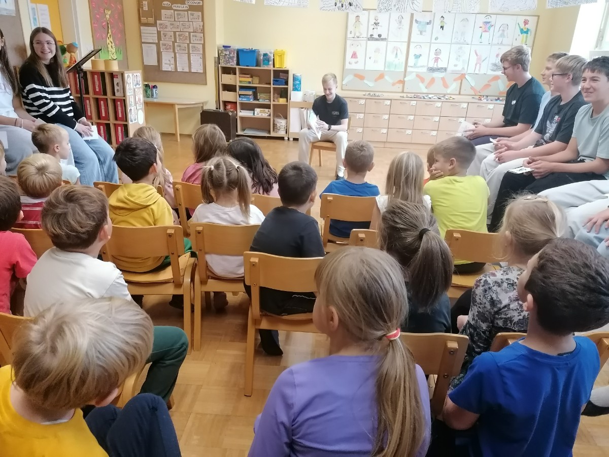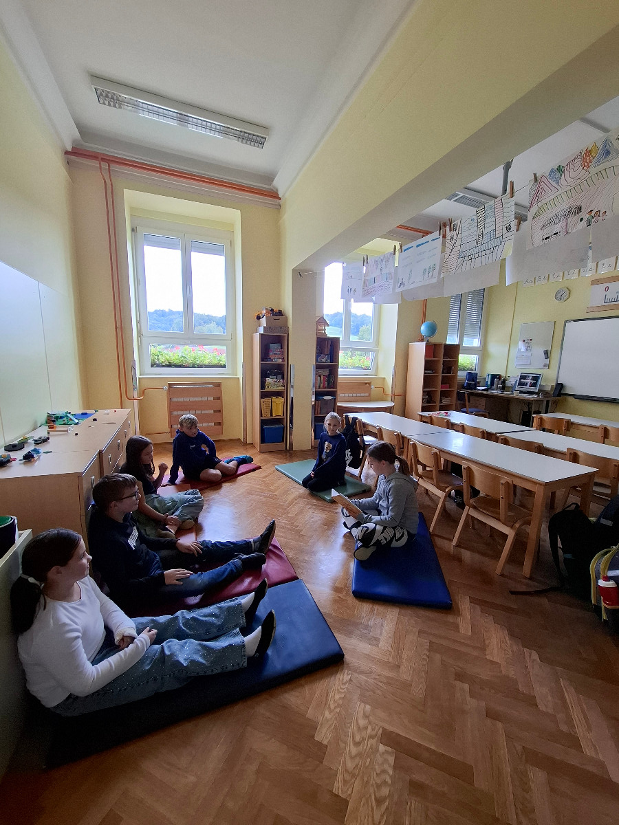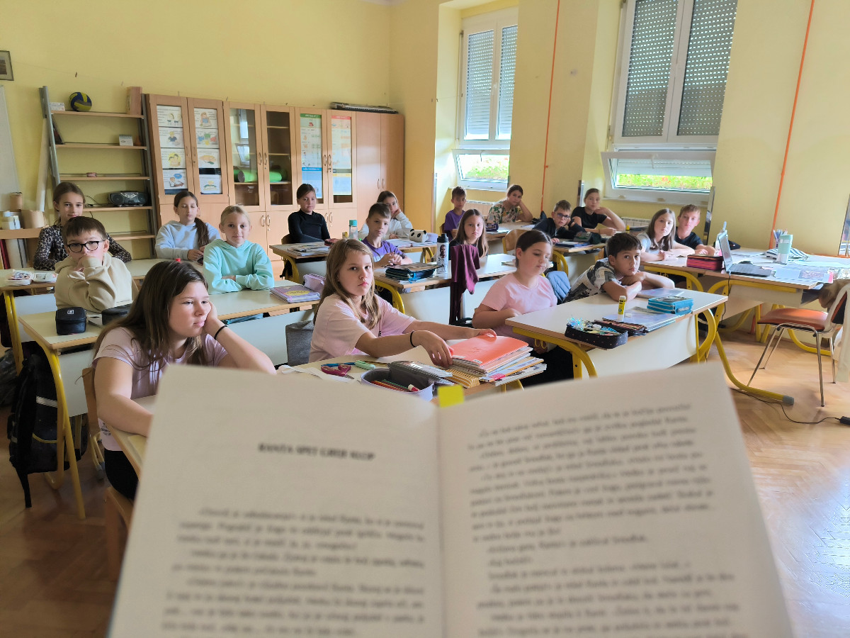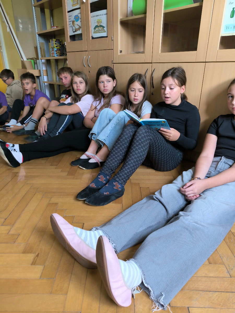V četrtek, 2. 10. 2025, so se Nacionalnemu mesecu skupnega branja pridružili tudi pri uri RaP - Besede za sladkosnede. Učenci so ob glasnem prebiranju Lainščkovih pravljic iz zbirke Mislice potovali v čarobne kotičke Murinih rokavov. Bogata in slikovita pripoved iz pravljičnih kraljestev ter modrosti naših prednikov so ustavili čas in bili prava literarna poslastica za naše male sladokusce.