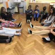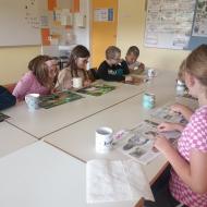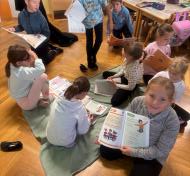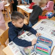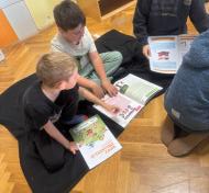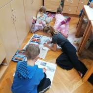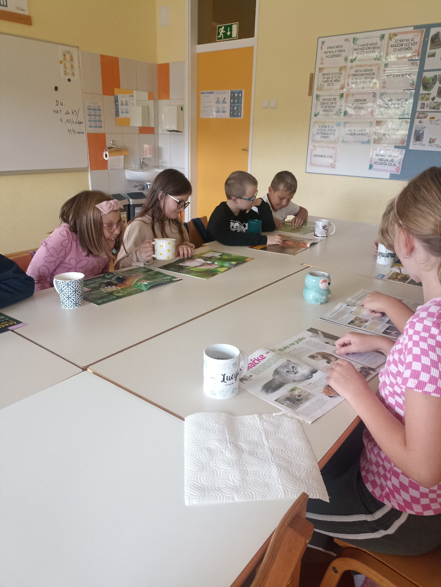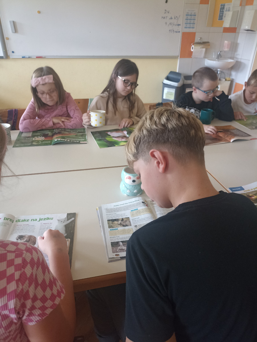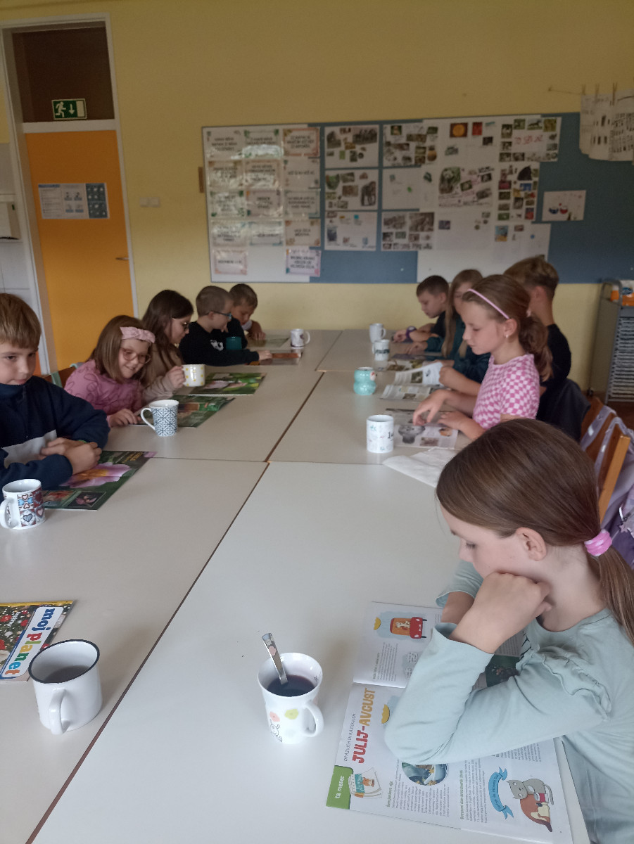 Učenci so imeli pravo malo literarno čajanko. Ob pitju čaja so tokrat listali po revijah, spoznavali različne rubrike in glasno prebrali sošolcem, ko so našli kaj zanimivega.