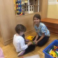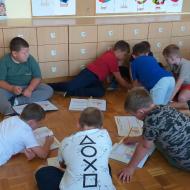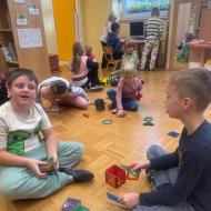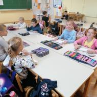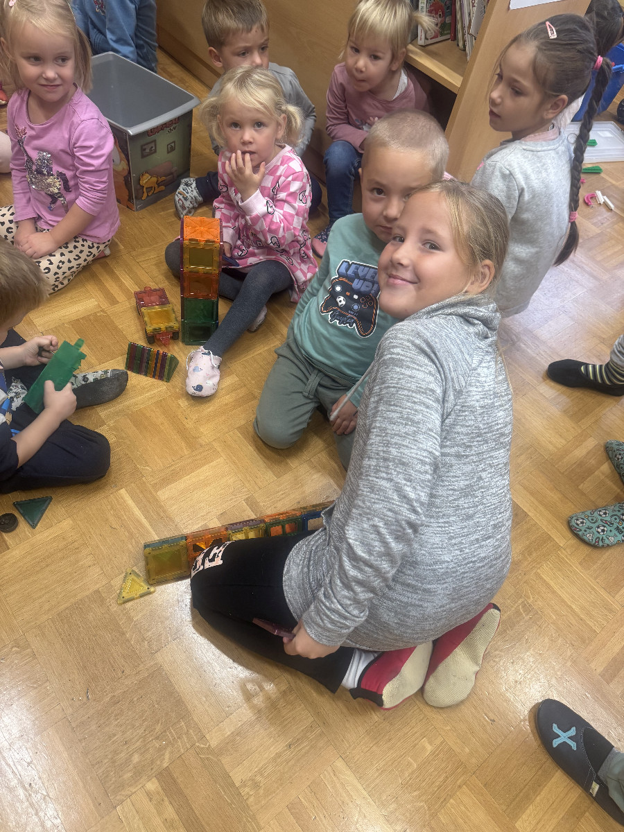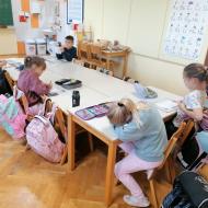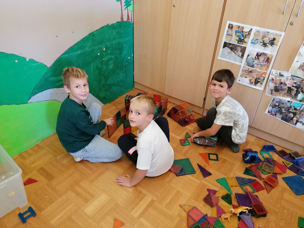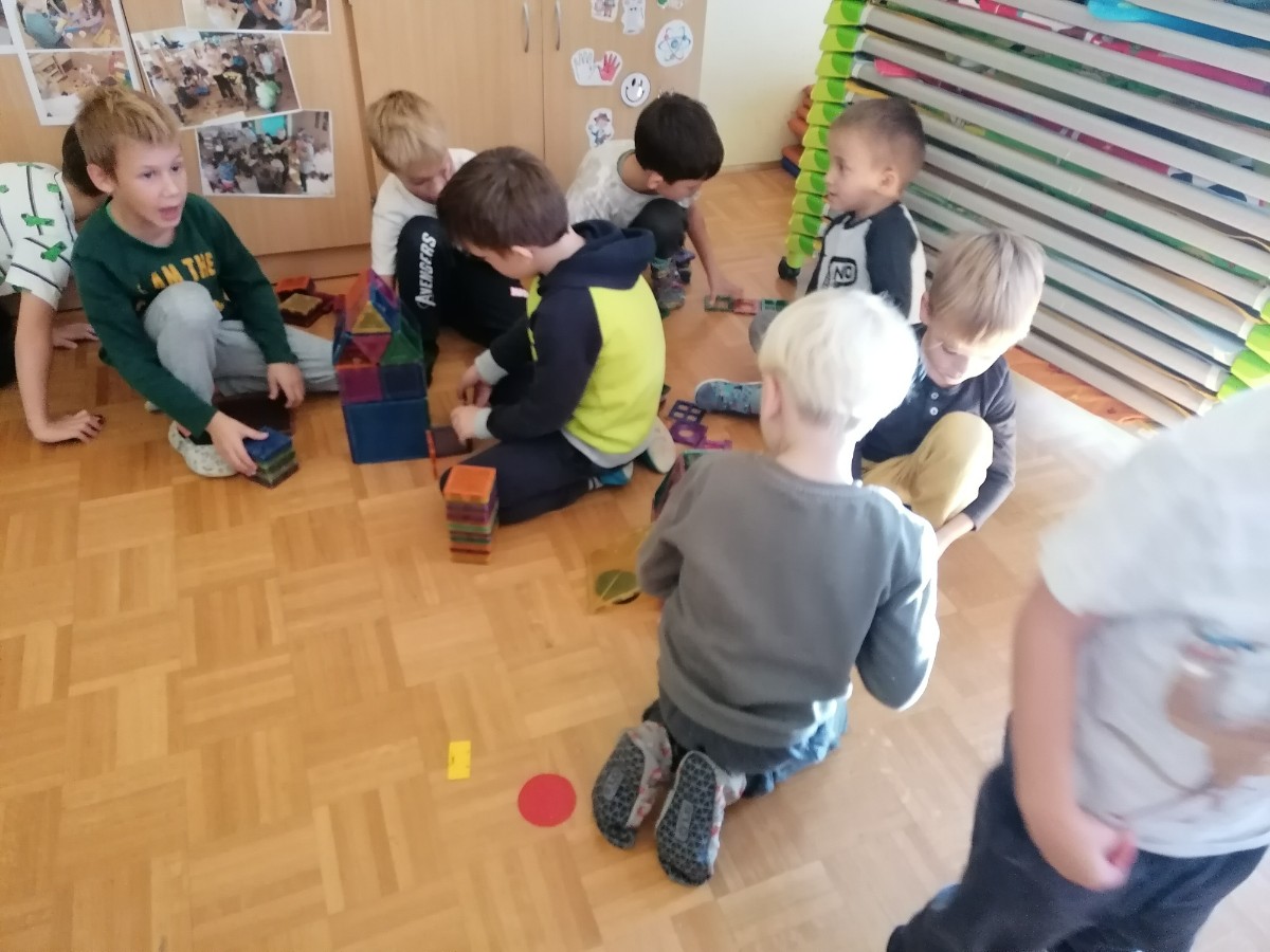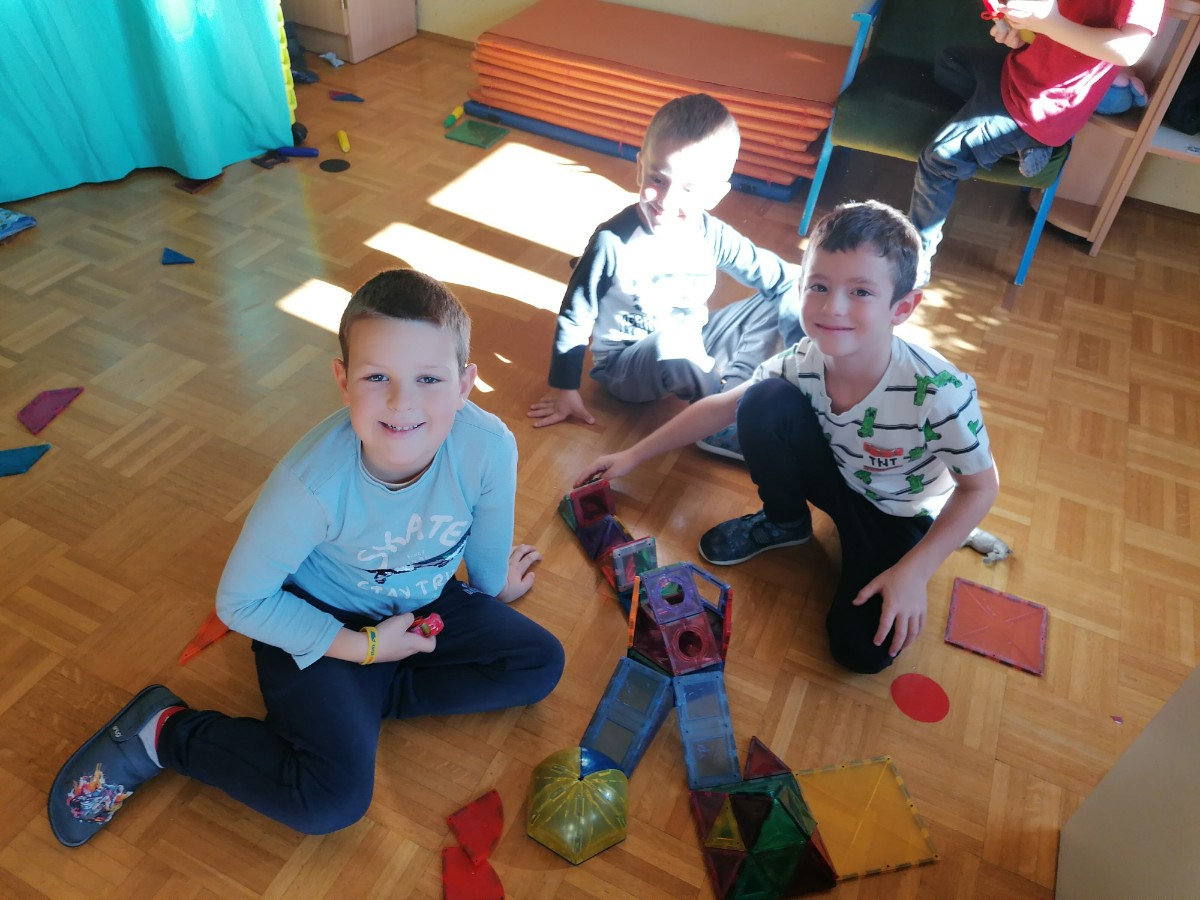 Prvošolci so se danes razveselili starih prijateljev, prijaznih besed, zanimivih igrač in proste igre. Lepe in prijazne trenutke so preživeli z otroki skupine Utrinki.