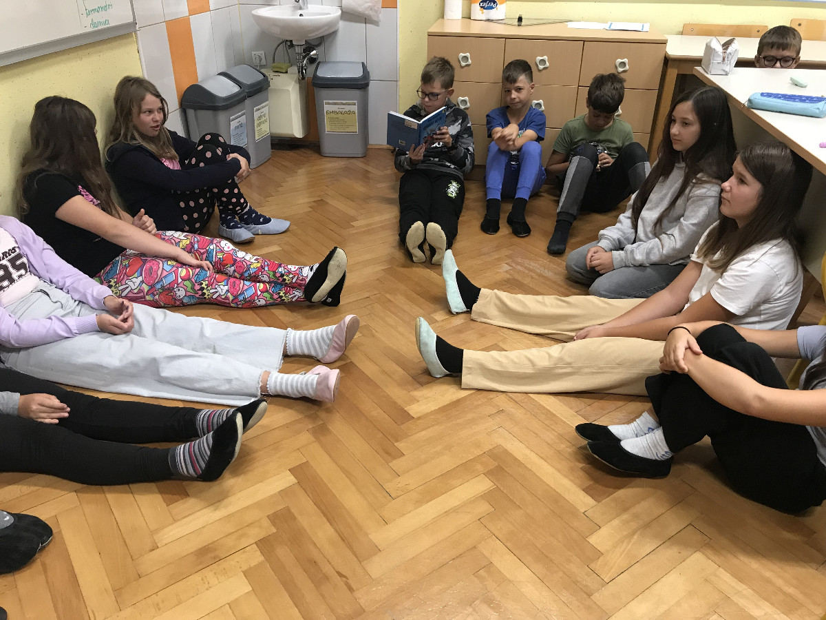 V petem razredu si vsak dan vzamejo čas za branje knjige Primoža Suhodolčana Košarkar naj bo. Vsak dan preberejo eno poglavje. Včasih sedijo v krogu, včasih pa kar v klopeh. Berejo vsi - en odstavek prebere učiteljica, naslednje pa učenci. Vsi skupaj se vsak dan veselijo nadaljevanja branja in ob njem prav uživajo. Knjigo bi rabi prebrali do konca tedna otroka, saj si bodo takrat še pogledali film, posnet po knjižni predlogi, in poiskali podobnosti in razlike.