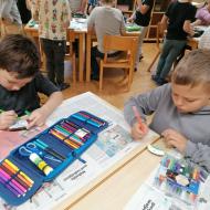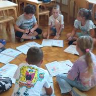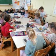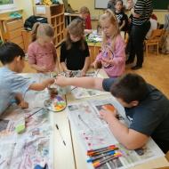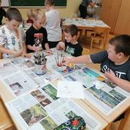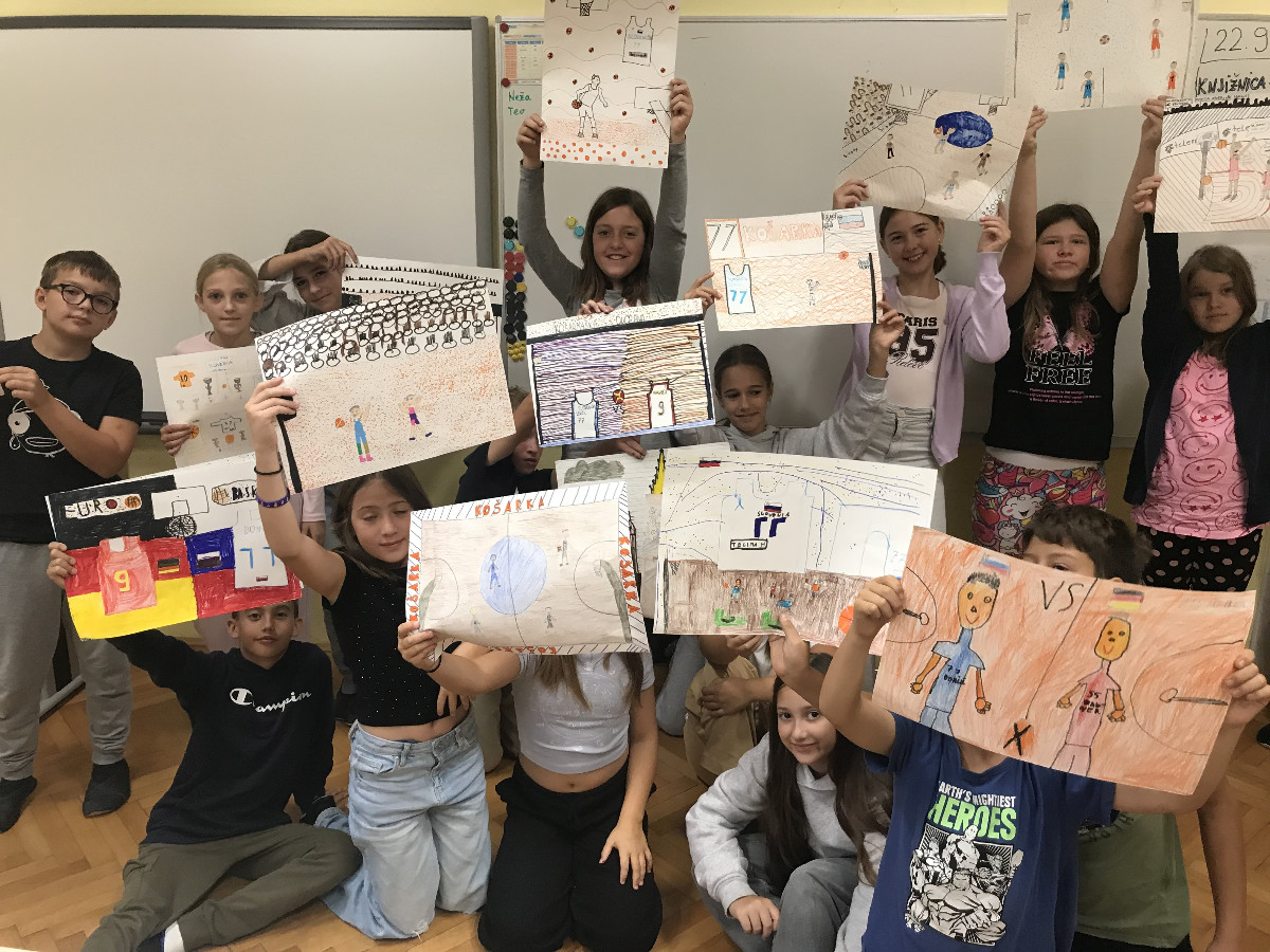 Učnenci 5. razreda so likovno umetnost medpredmetno povezali s slovenščino in v sklopu NMSB po glasnem branju odlomkov iz knjige Primoža Sudodolčana: Košarkar naj bo! ustvarjali svoje barvne ilustracije. Branje omenjene knjige so povezali z aktualnim dogodkom - evropskim prvenstvom v košarki, na katerem je uspešno sodelovala tudi Slovenija. Učenci so pri oblikovanju svojih ilustracij upoštevali pravila likovne kompozicije.