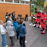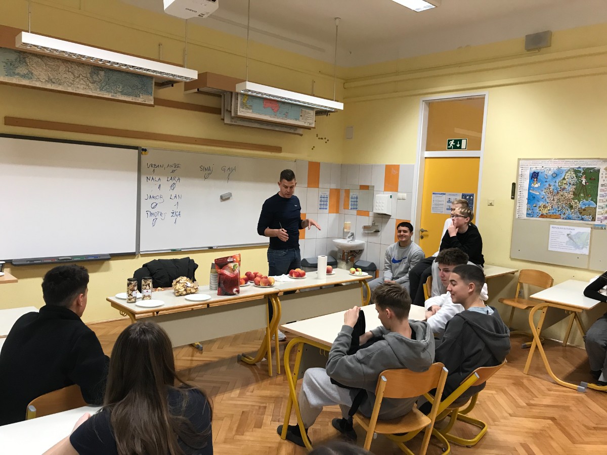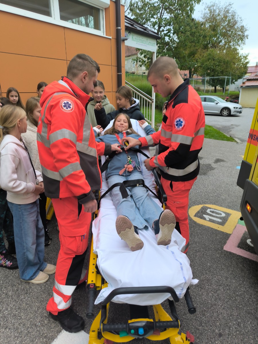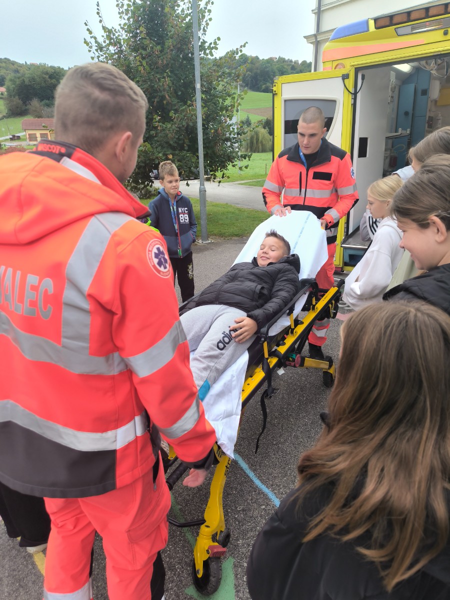 Prvo uro nas je v razredu obiskala zobozdravstvena asistentka, s katero so učenci obnovili svoje znanje o zobeh, zobni gnilobi in pravilni tehniki čiščenja zob. Drugo uro sta nas pred vhodom v šolo čakala dva reševalca z reševalnim vozilom. Predstavila sta nam njuno delo, vse kar lahko najdemo v reševalnem vozilu, in pojasnila, za kaj se oprema uporablja. Učenci so si nato ogledali še notranjost vozila, preizkusiti pa smo morali (seveda) tudi nosila. Tretjo uro nas je v razredu obiskala psihologinja, s katero smo se pogovarjali o strahu in o tem, kako ga premagovati. Četrto uro smo se preselili v telovadnico, kjer nas je že čakala kineziologinja. Sledila je ura zabavnih razteznih vaj in drugih gibalnih iger. Na koncu nas je obiskala še diplomirana medicinska sestra, s katero smo se pogovarjali predvsem o stresu in o tem, kako ga obvladovati.