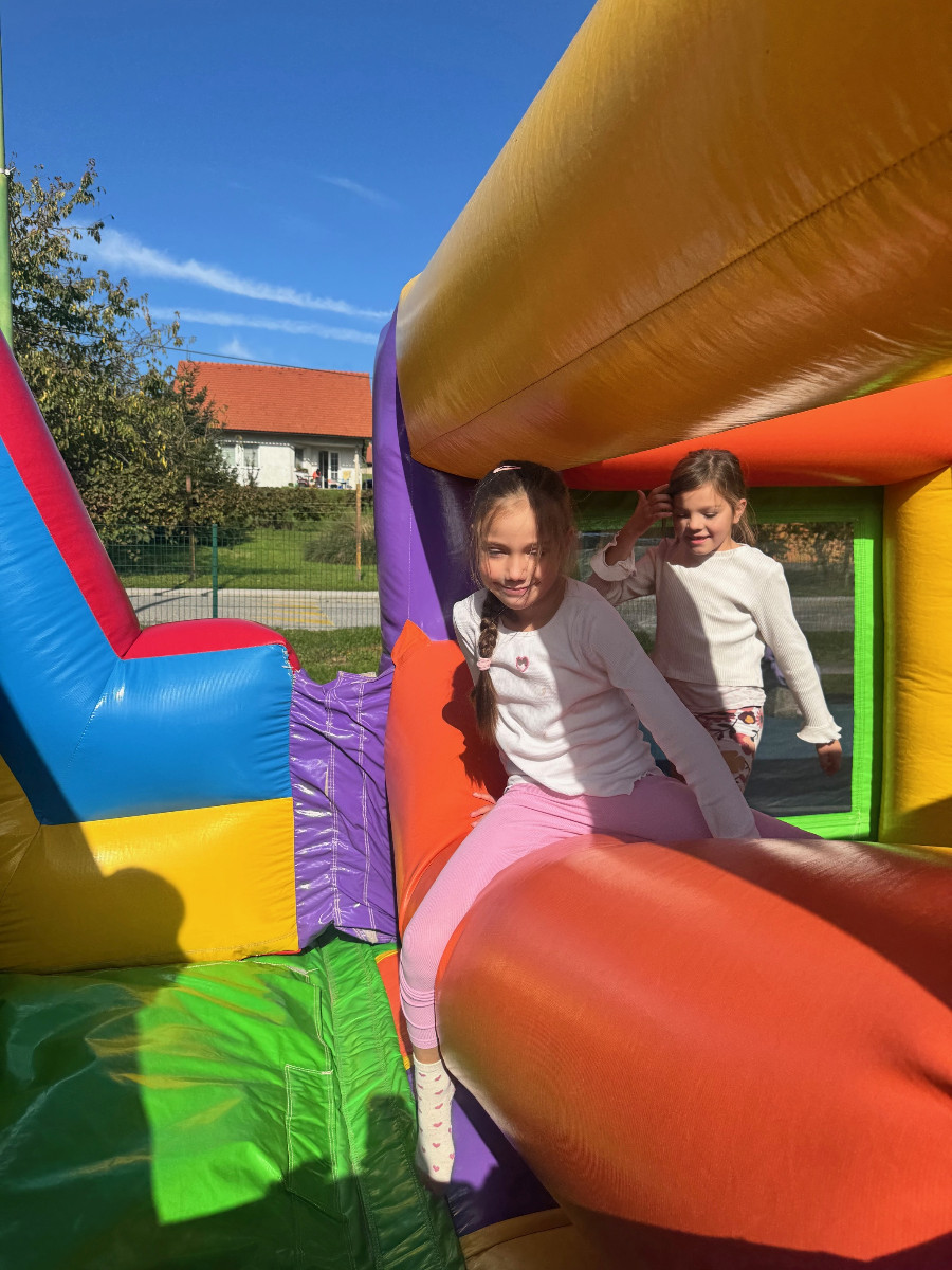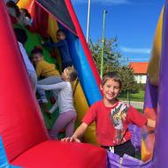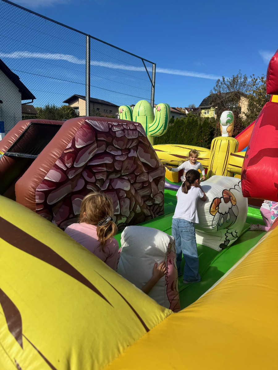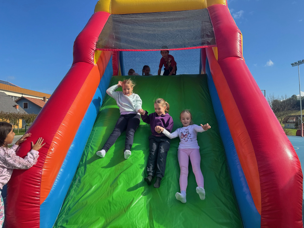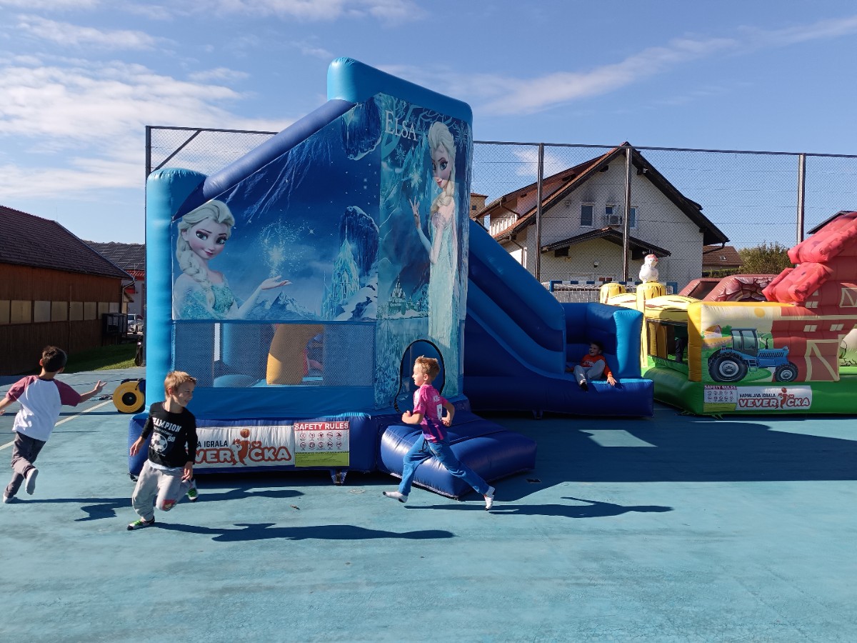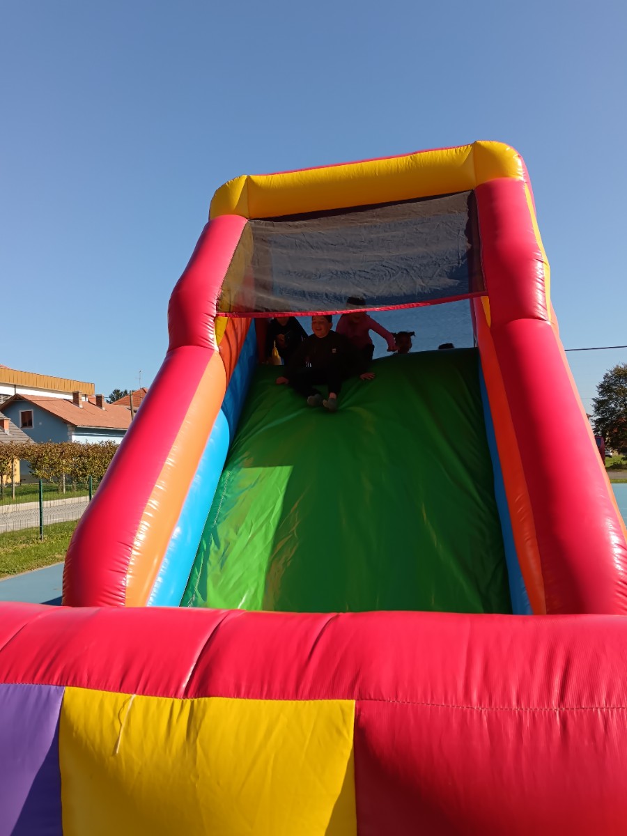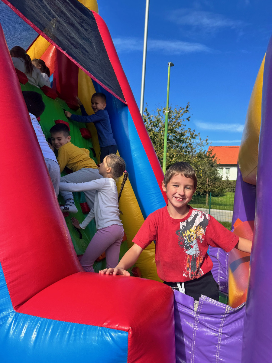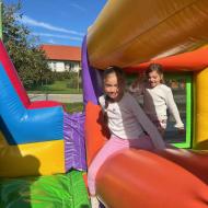 V tednu otroka so drugošolci uživali tudi na napihljivih igralih. Sonček je dodatno poskrbel za dobro voljo in nasmeh na obrazih otrok. Učenci so izkoristili čas za skakanje, plezanje in dobro voljo. Kratek, a zabaven trenutek se jim bo gotovo vtisnil v spomin.