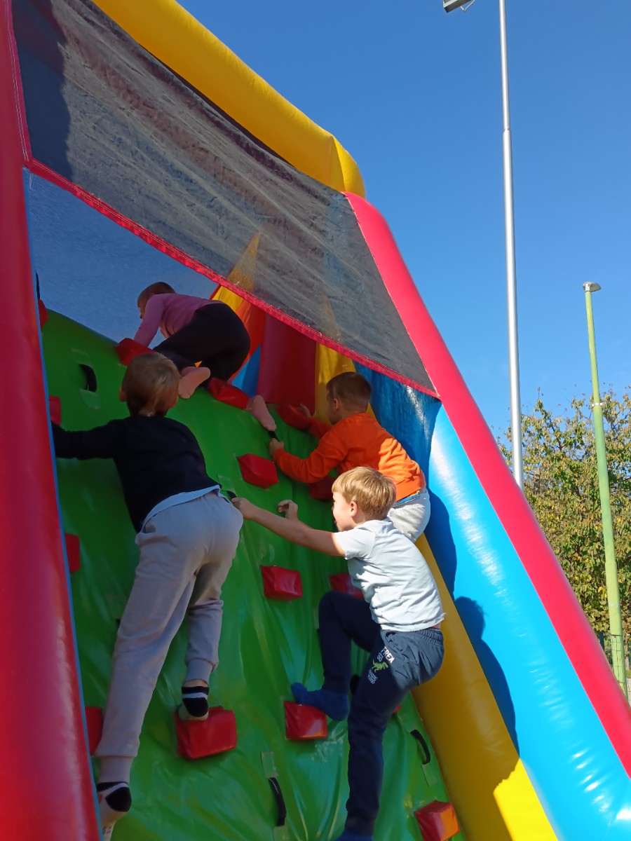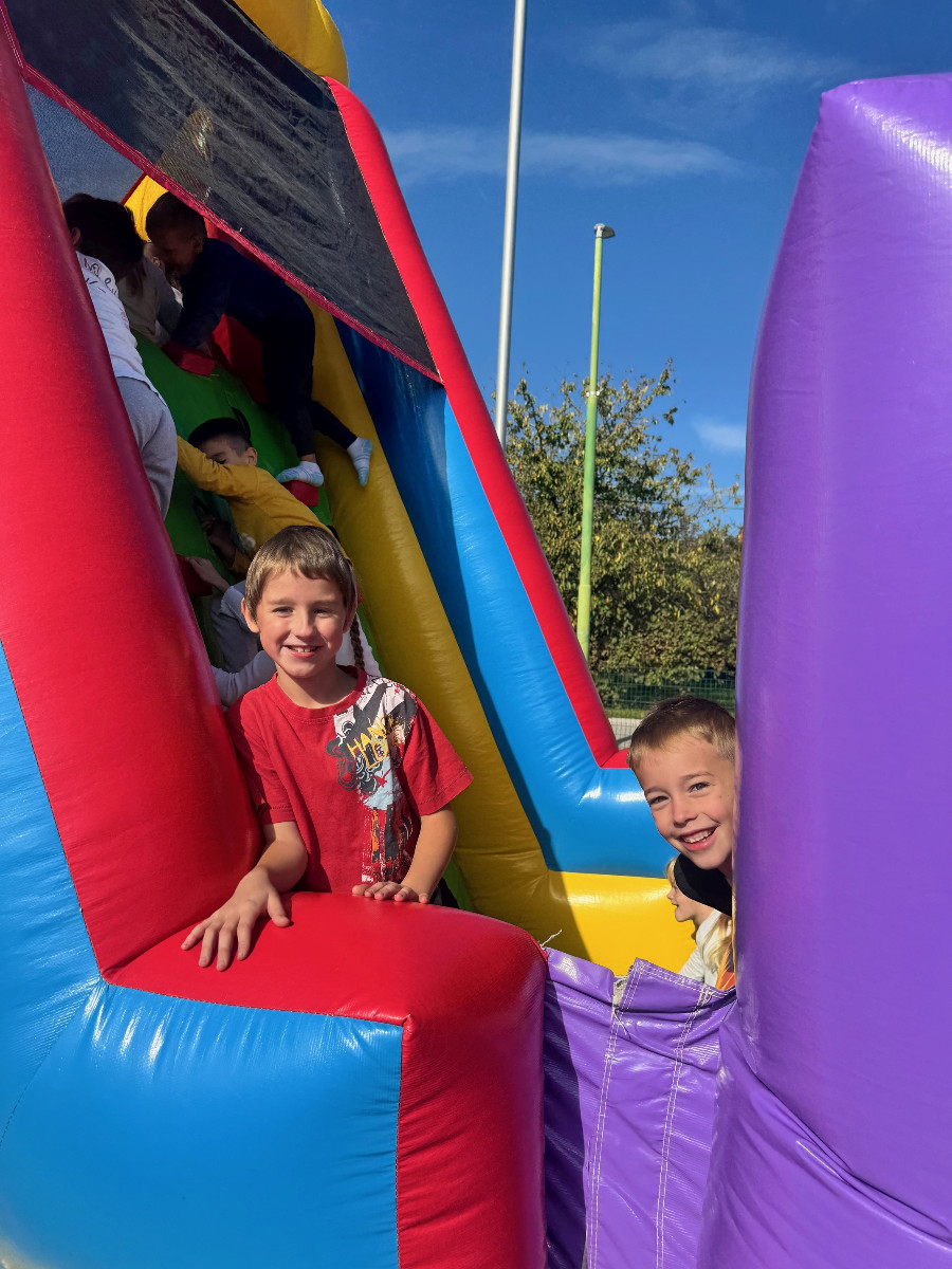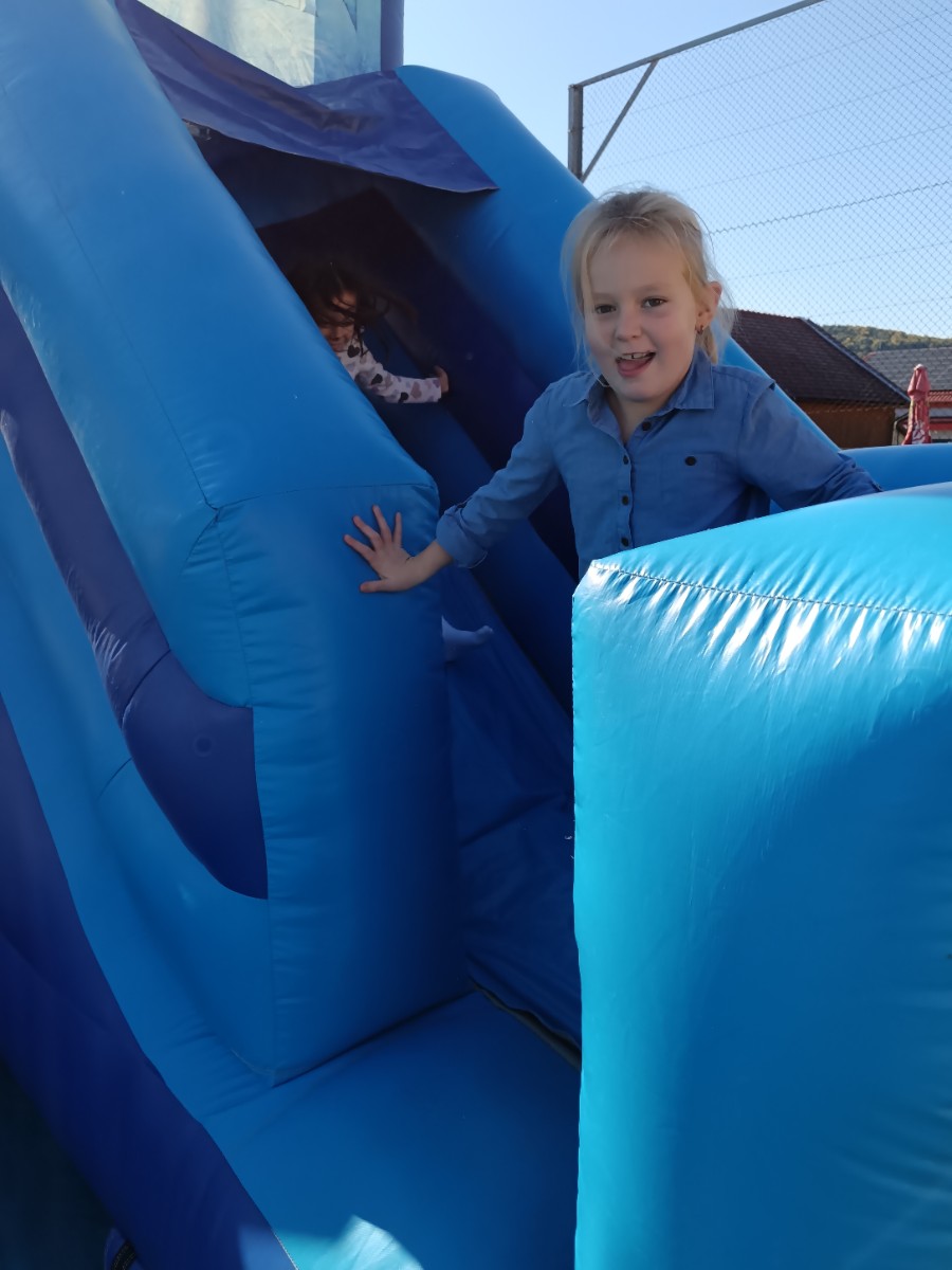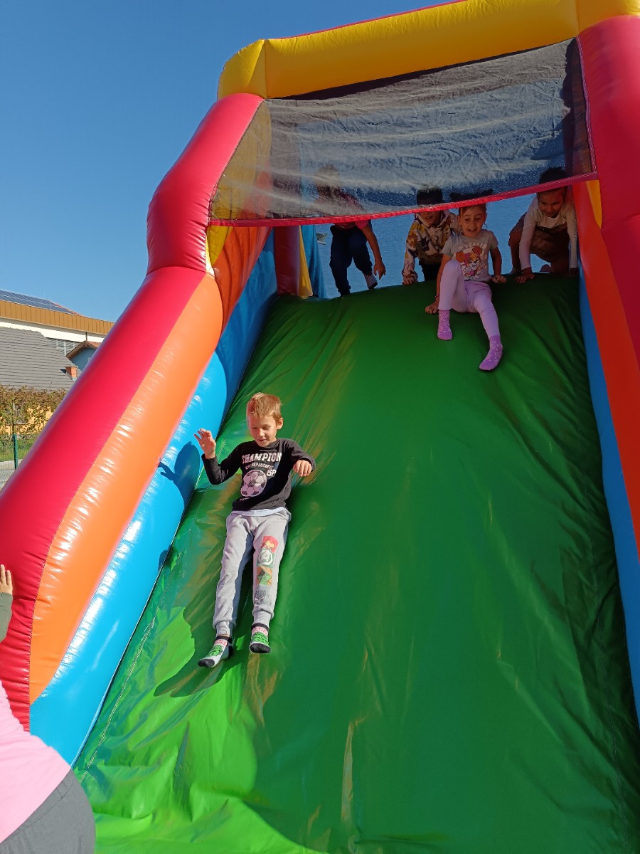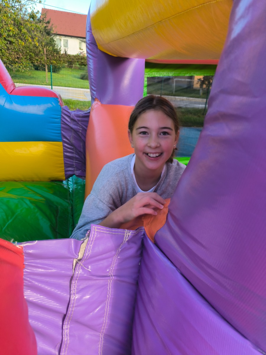 V tednu otroka so drugošolci uživali tudi na napihljivih igralih. Sonček je dodatno poskrbel za dobro voljo in nasmeh na obrazih otrok. Učenci so izkoristili čas za skakanje, plezanje in dobro voljo. Kratek, a zabaven trenutek se jim bo gotovo vtisnil v spomin.