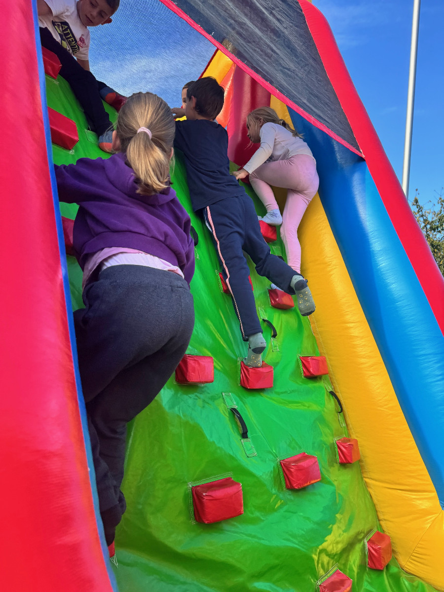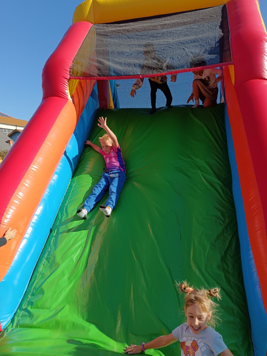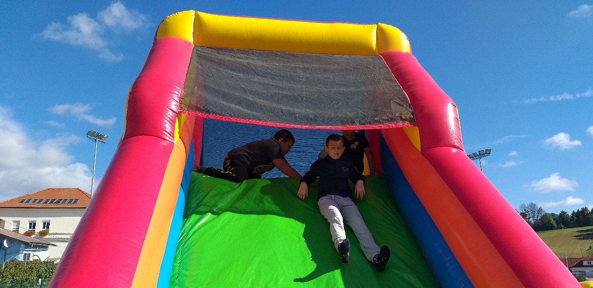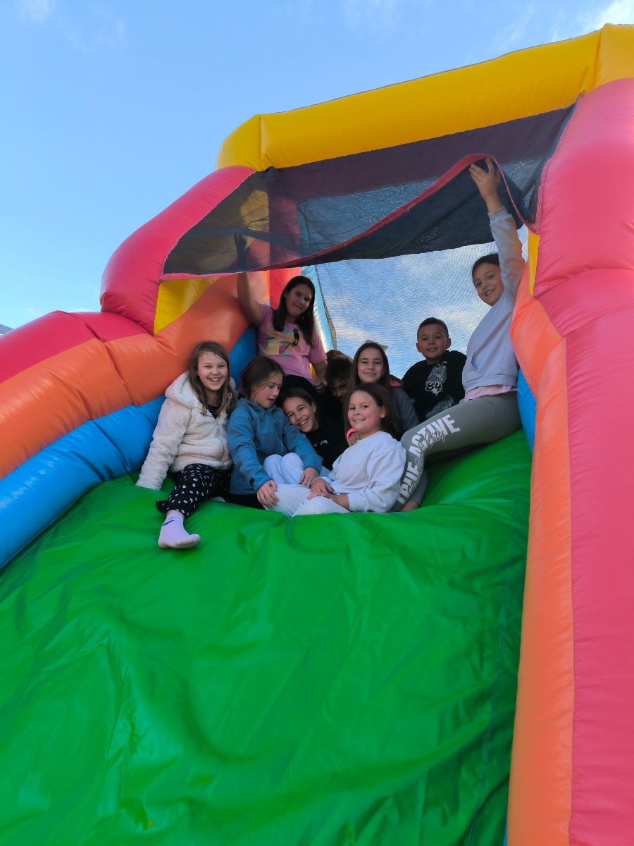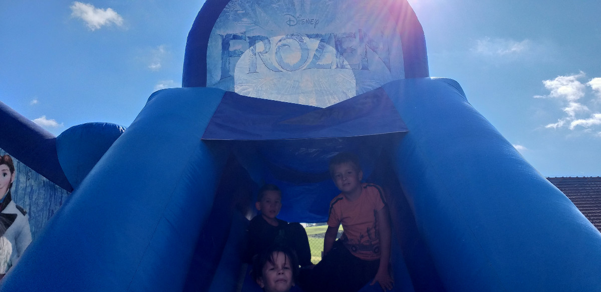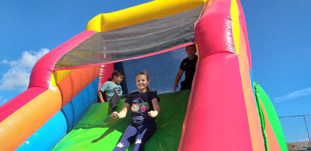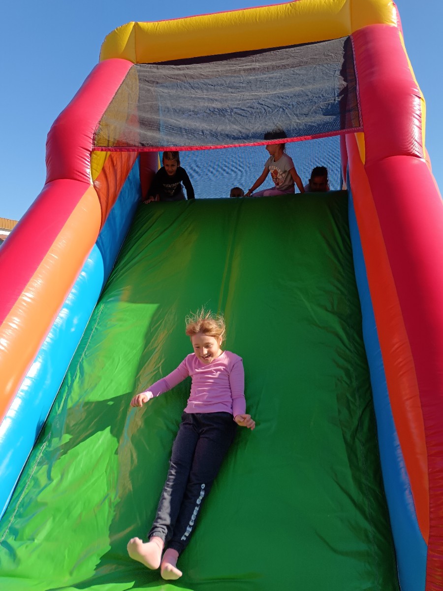 V tednu otroka so drugošolci uživali tudi na napihljivih igralih. Sonček je dodatno poskrbel za dobro voljo in nasmeh na obrazih otrok. Učenci so izkoristili čas za skakanje, plezanje in dobro voljo. Kratek, a zabaven trenutek se jim bo gotovo vtisnil v spomin.