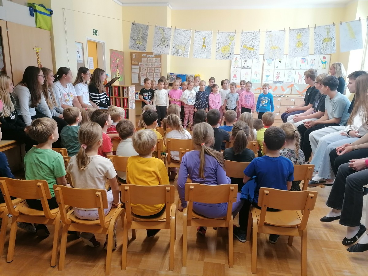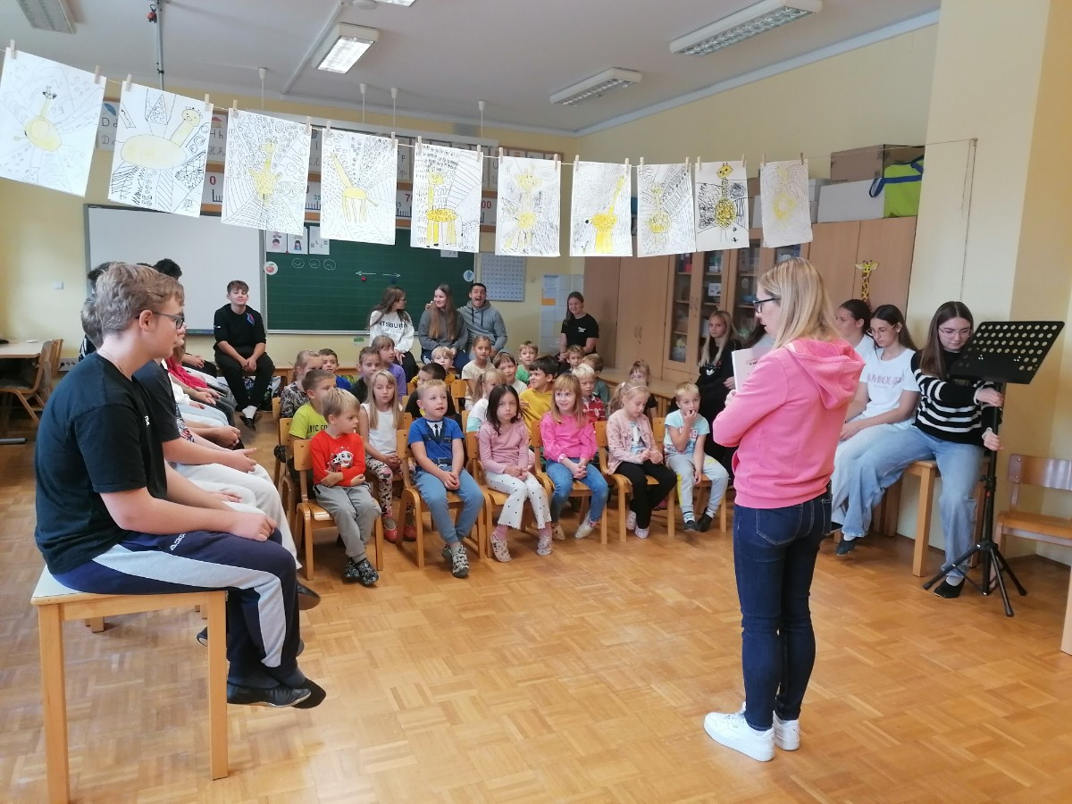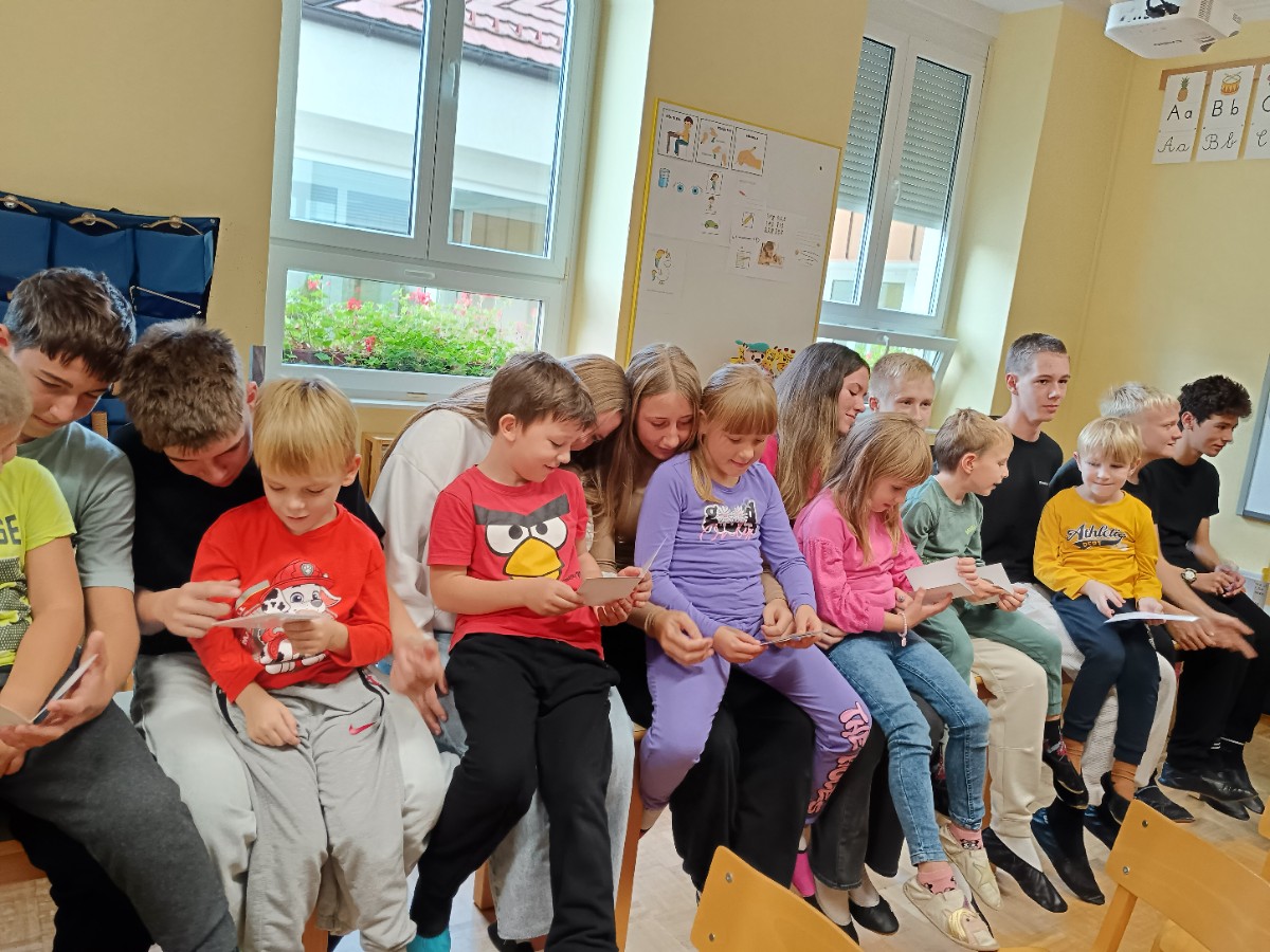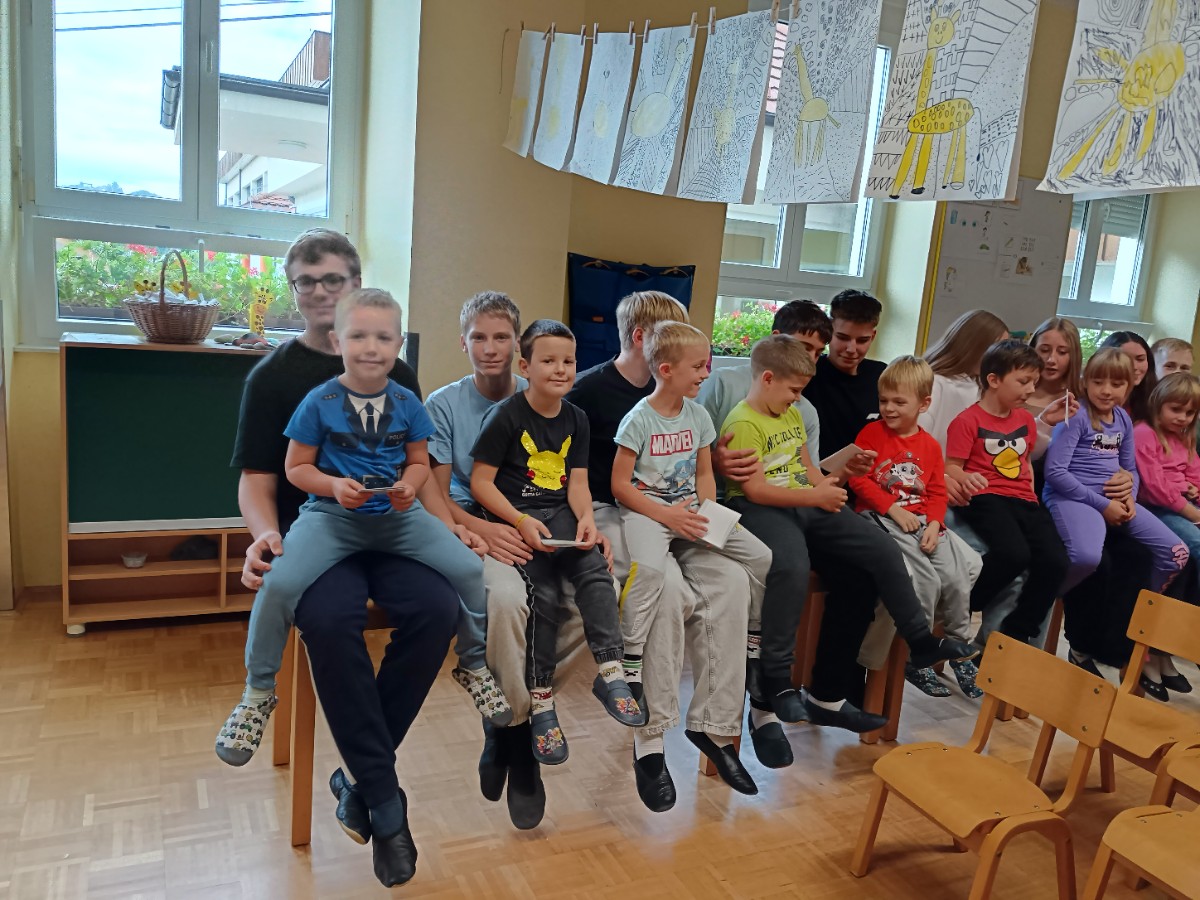 Danes je bil za prvošolce prav poseben dan. Po mesecu dni v šoli so bili sprejeti v skupnost učencev šole. Učenci 2. in 3. razreda so jim zapeli pesmi in predali lepe želje. Posebno nalogo na sprejemu pa so imeli devetošolci. Pripravili so jim zanimiv program z branjem pravljice, igranjem na glasbila in plesom. Prevzeli so tudi odgovorno nalogo, saj so postali čisto pravi varuhi prvošolčkom. Že na prvem srečanju so se med njimi spletle prijateljske vezi. Skozi šolsko leto se bo njihovo prijateljstvo še poglobilo, skupni trenutki pa jim bodo zagotovo ostali v lepem spominu.