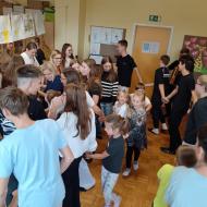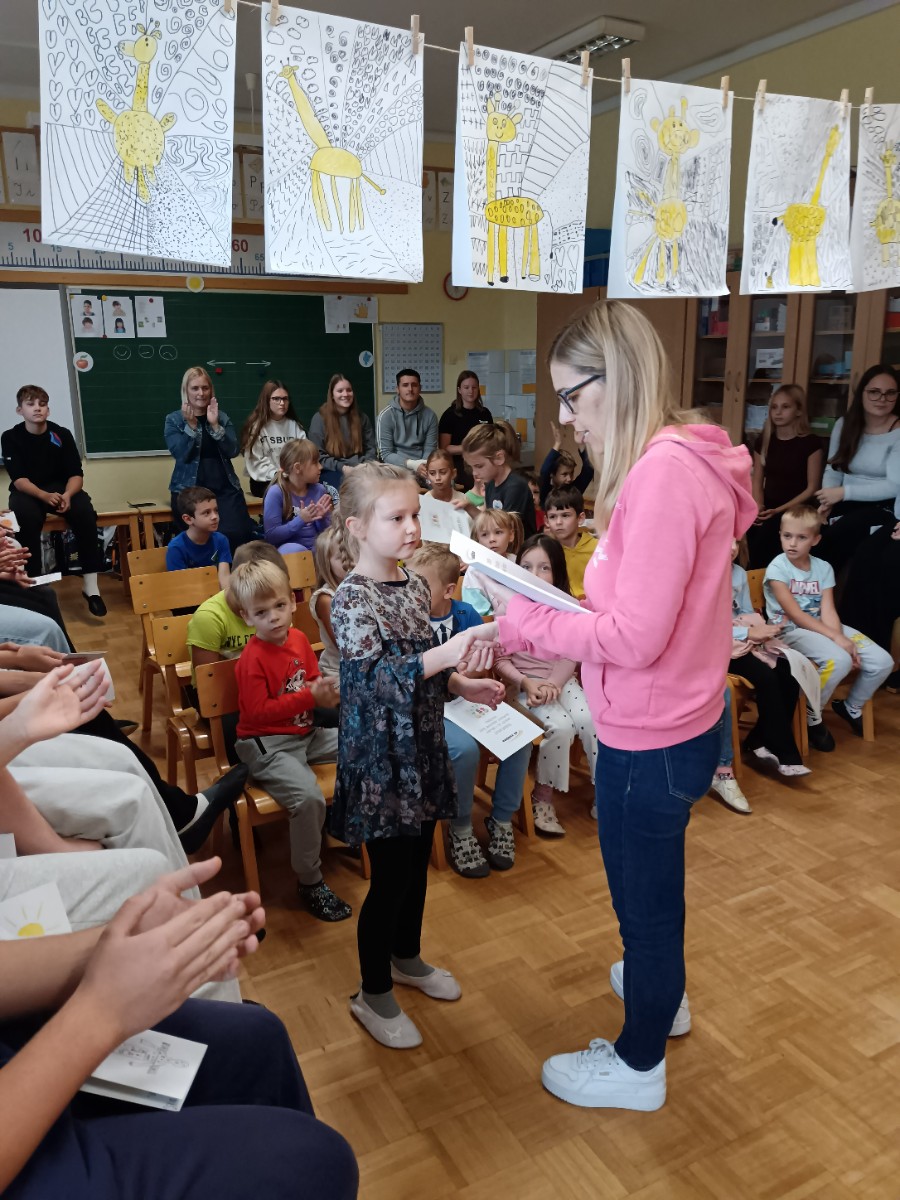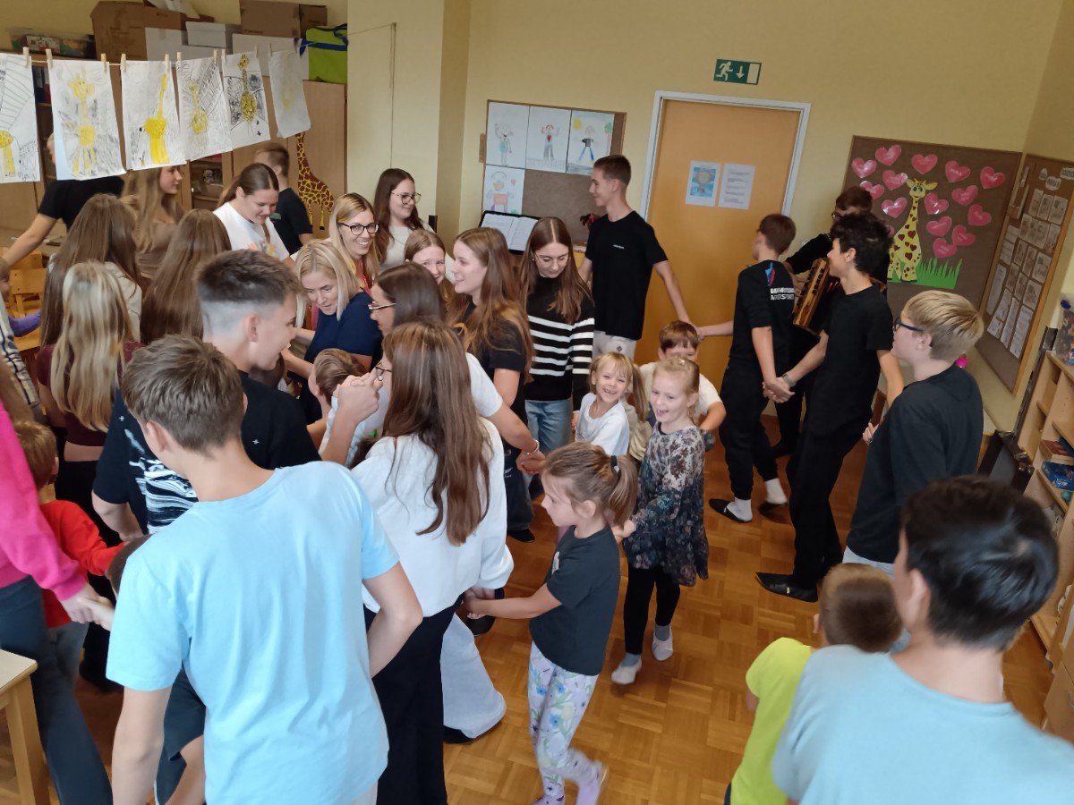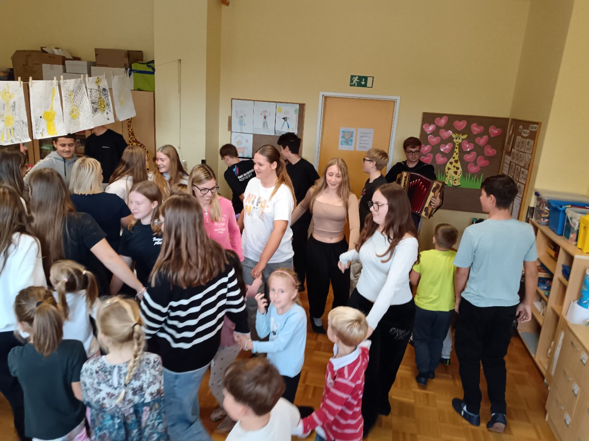 Danes je bil za prvošolce prav poseben dan. Po mesecu dni v šoli so bili sprejeti v skupnost učencev šole. Učenci 2. in 3. razreda so jim zapeli pesmi in predali lepe želje. Posebno nalogo na sprejemu pa so imeli devetošolci. Pripravili so jim zanimiv program z branjem pravljice, igranjem na glasbila in plesom. Prevzeli so tudi odgovorno nalogo, saj so postali čisto pravi varuhi prvošolčkom. Že na prvem srečanju so se med njimi spletle prijateljske vezi. Skozi šolsko leto se bo njihovo prijateljstvo še poglobilo, skupni trenutki pa jim bodo zagotovo ostali v lepem spominu.