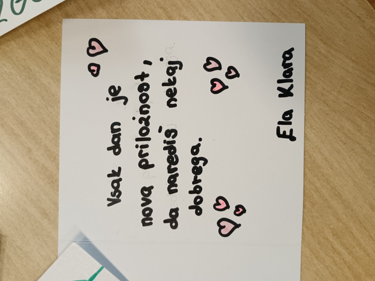 Danes se je pričel Teden otroka z geslom: "Prijaznost ti bo krila dala, vedno reci prosim in hvala." Učenci 1. VIO so ga pričeli z dnevom prijaznih dejanj. Naslikali so kamenčke prijaznosti in zapisali ter narisali prijazne misli. S svojimi izdelki bodo v tem tednu mnogim ljudem polepšali dan.