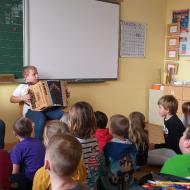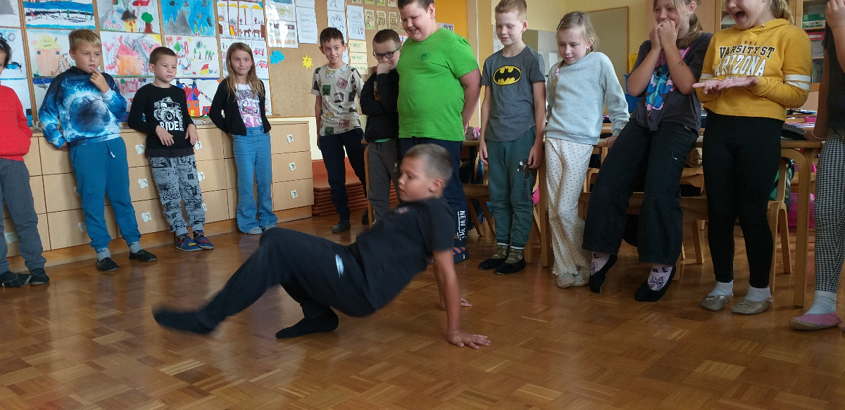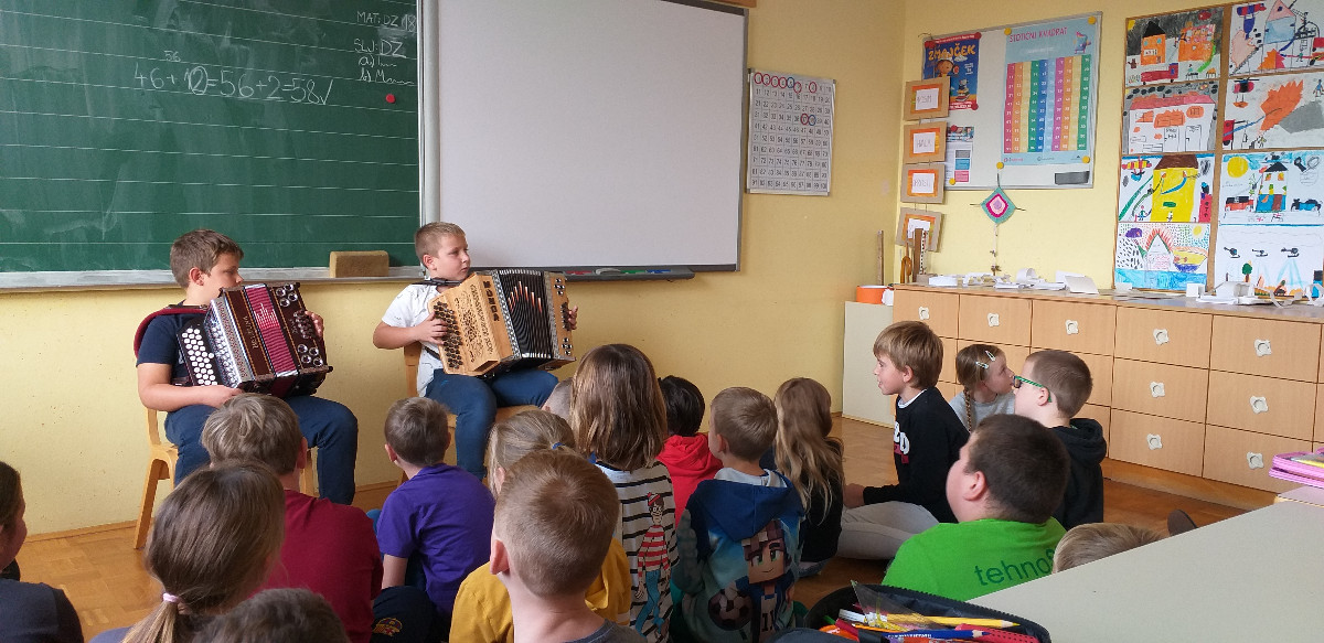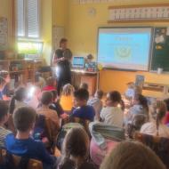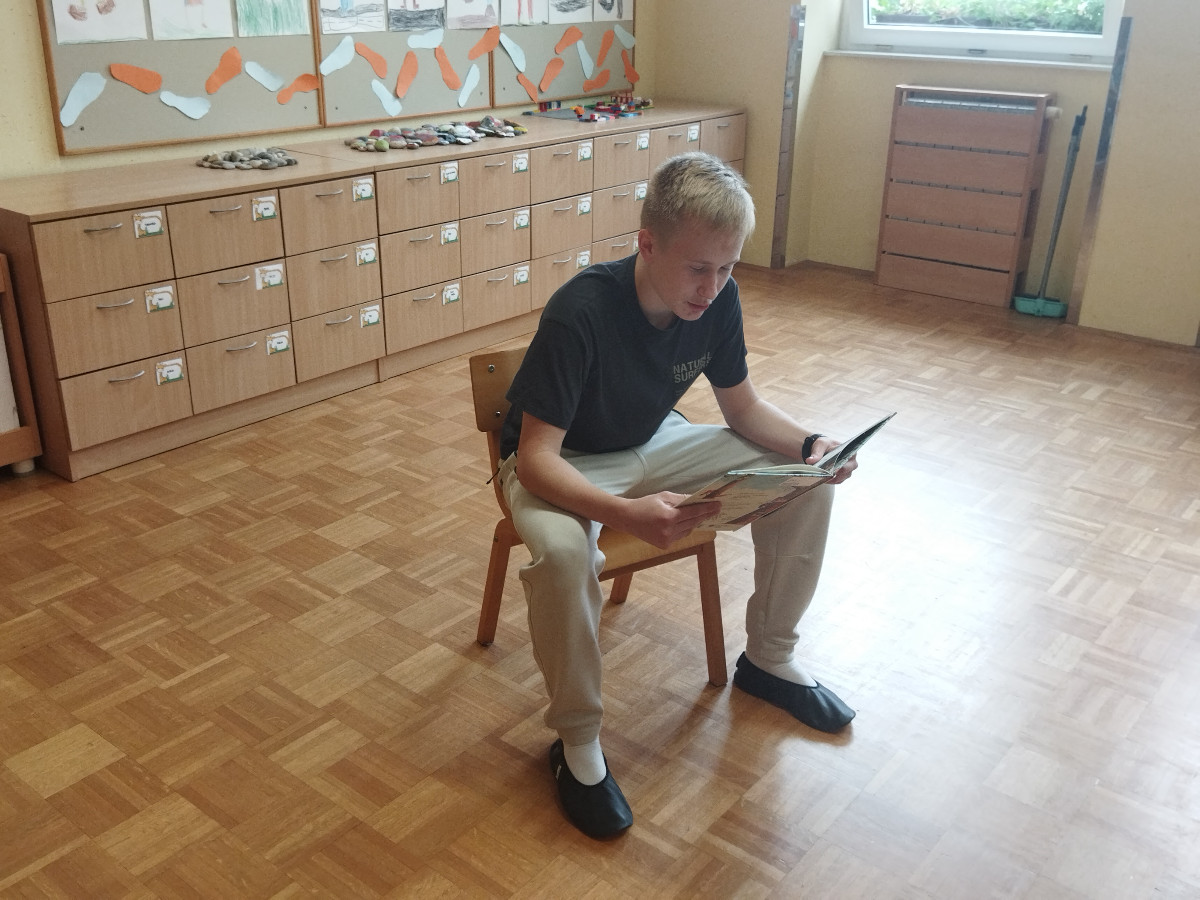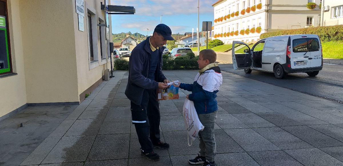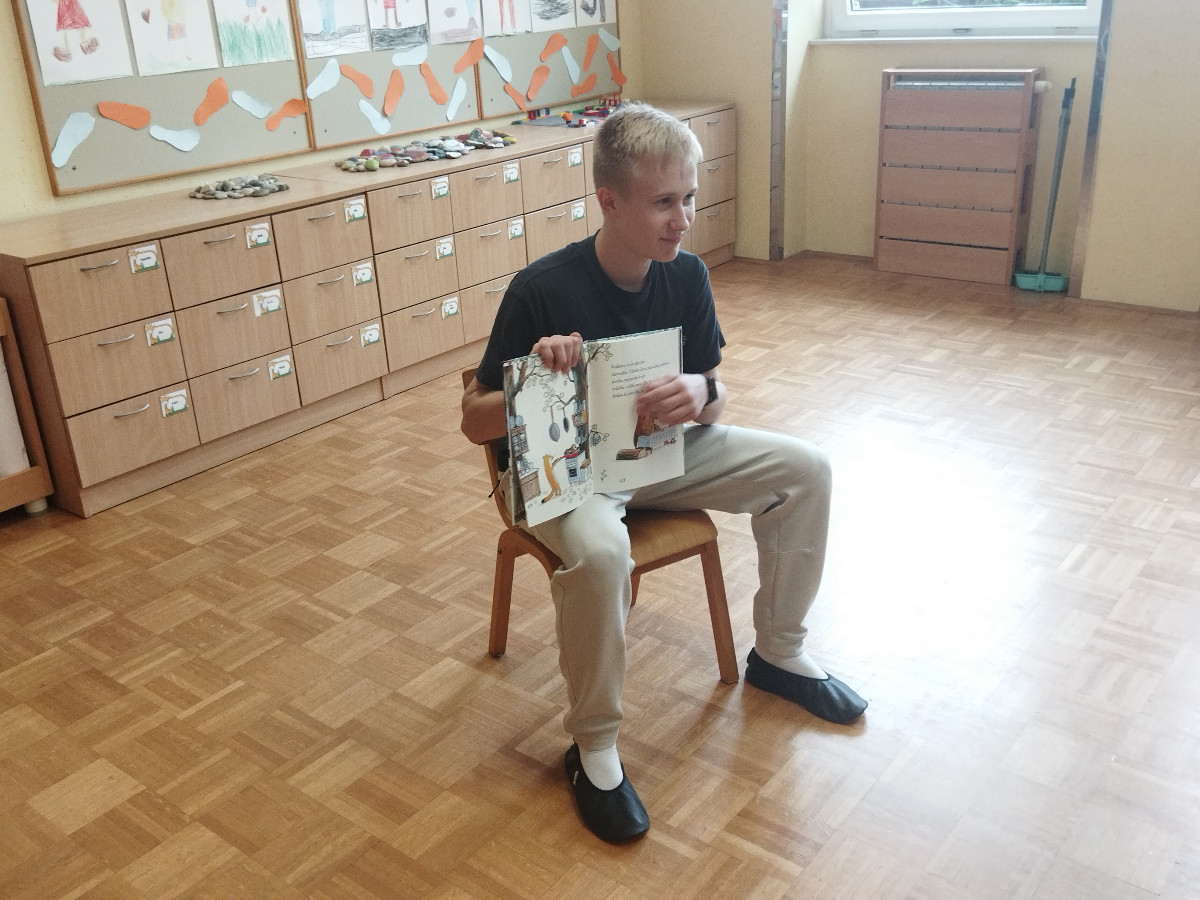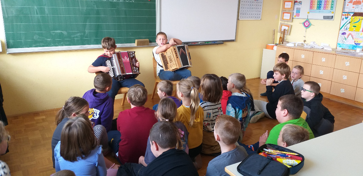 V četrtek, 9. 10. 2025, so v sklopu sprejema prvošolcev v šolsko skupnost devetošolci za naše najmlajše šolarje pripravili poleg igranja na inštrumente tudi bralno presenečenje. Žiga jim je prebral pravljico, ki jim je odprla oči za pomembno sporočilo, da si je stvari potrebno deliti.
