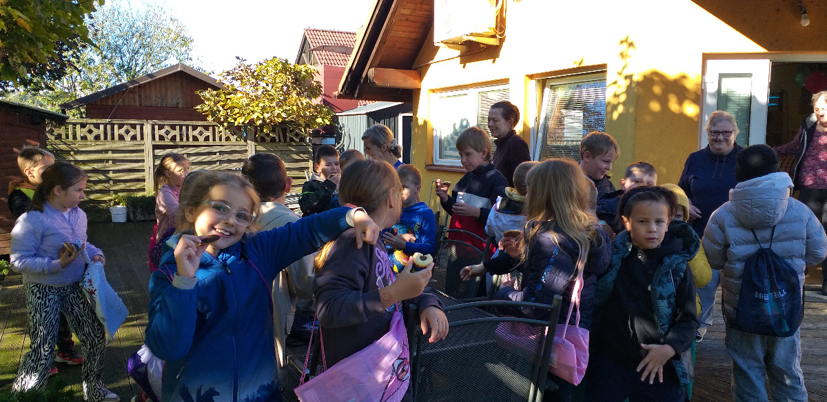Lep sončen jesenski dan. Sproščena igra na svežem zraku. Veliko vriskanja in skakanja. Mislim, da nasmejani obrazi na fotografijah povedo vse.