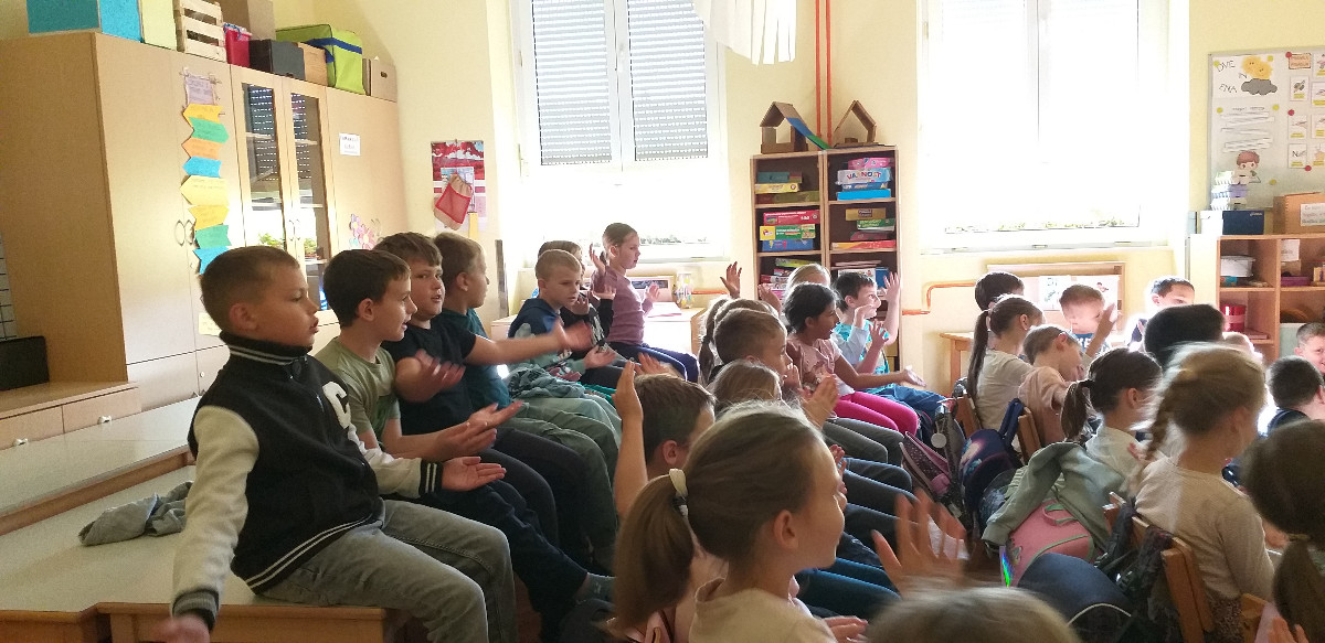 Zadnji dan Tedna otroka nam je v šoli polepšala Aleksandra s knjižnice Lenart. Skupaj z njo smo odpotovali v knjižno deželo prijaznih besed in dejanj. Ugotovili smo, da vsaka prijazna beseda in dejanje šteje in da lahko skupaj naredimo naš razred topel, prijeten in varen.