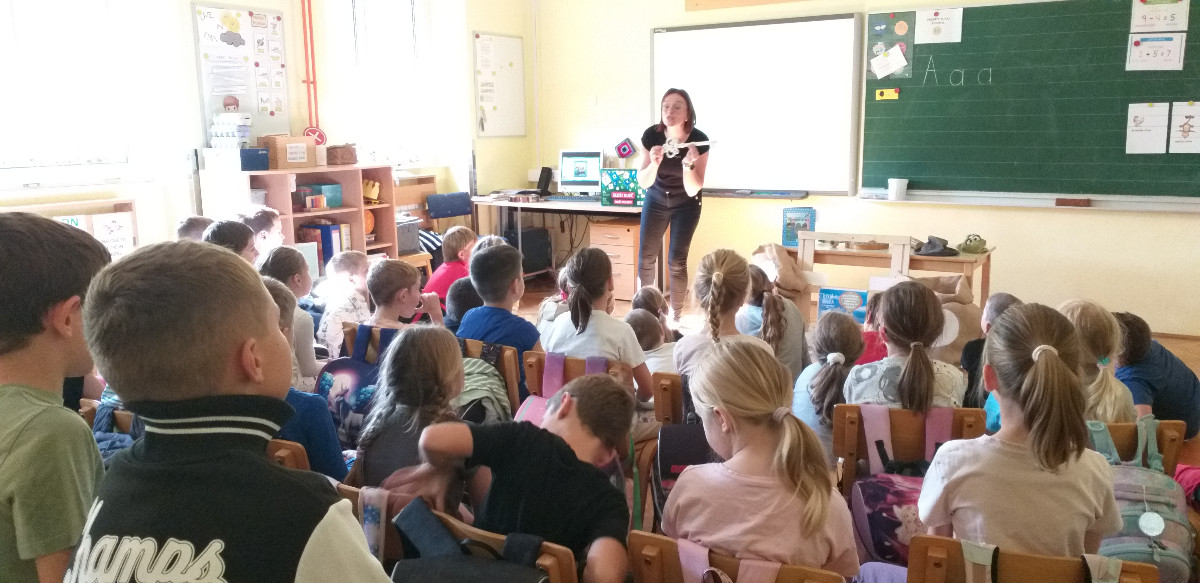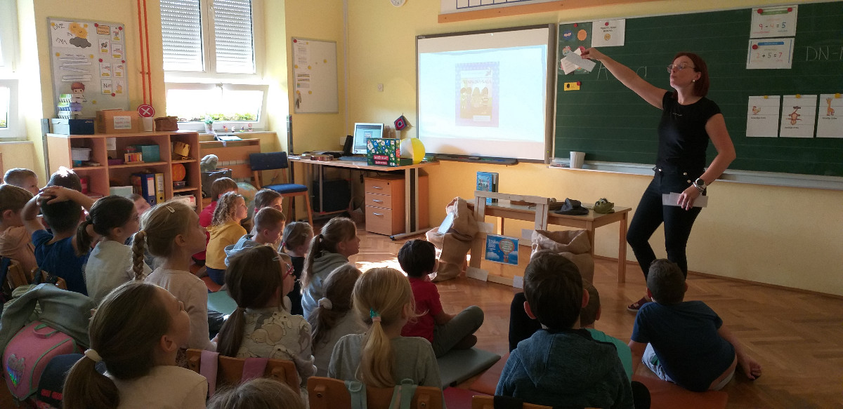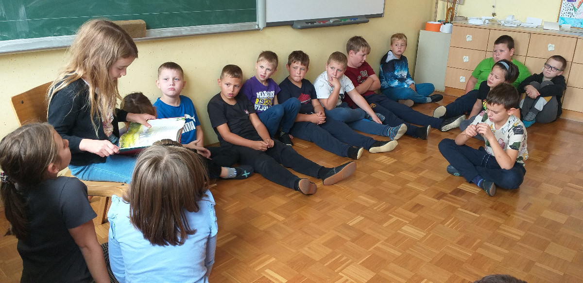 S pravljico je Žiga prvošolcem pokazal, kako zabavno in poučno je lahko branje, hkrati pa so tudi devetošolci začutili, kako pomebno je deliti znanje in izkušnje z mlajšimi.