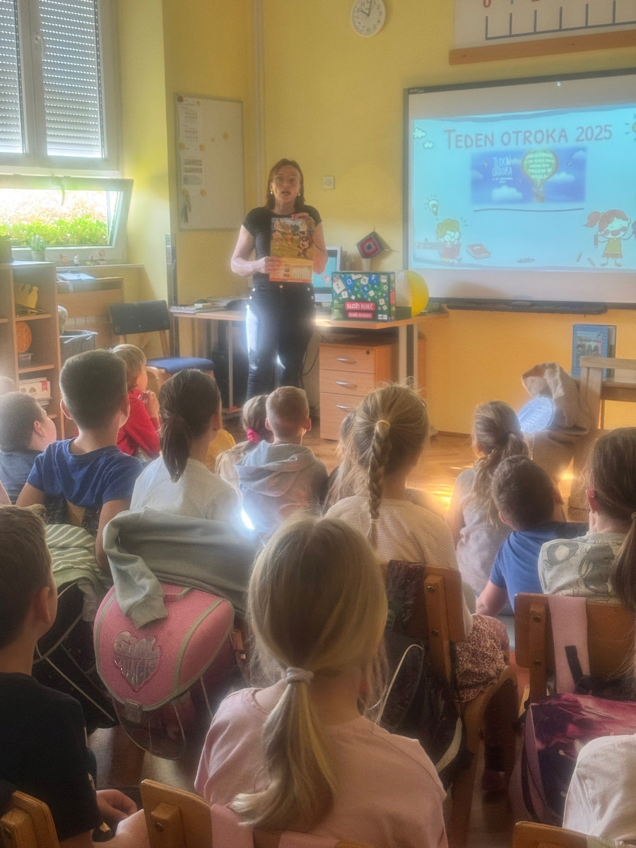 V ponedeljek smo imeli naravoslovni dan, v torek smo si ogledali prvo polovico filma Košarkar naj bo (saj smo cel september pridno brali istoimensko knjigo Primoža Suhodolčana). V sredo so nas na igrišču pričakala napihljiva igrala, danes, 9. oktobra 2025, pa smo imeli tehniški dan "Kolesarski poligon". Prvo uro nas je obiskal policist Boštjan, drugo uro smo se preizkusili na kolesarskem poligonu, tretjo uro smo malo ponovili teorijo za kolesarski izpit, četrto in peto uro pa smo nato v računalniški učilnici za vajo reševali naloge povezane z izpitom. V petek nas čaka še druga polovica filma Košarkar naj bo, s čimer bomo prijetno zaključili pester in zabaven teden otroka.