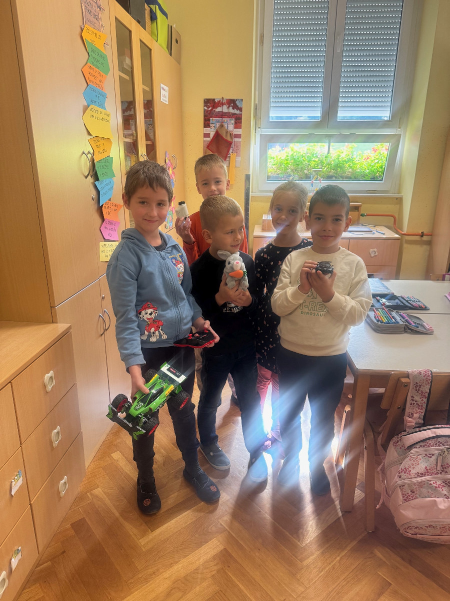 V četrtek pa so naš razred napolnili čisto drugačni obiskovalci. Učenci so od doma lahko prinesli svoje igrače, s katerimi so se tekom dneva poigrali.