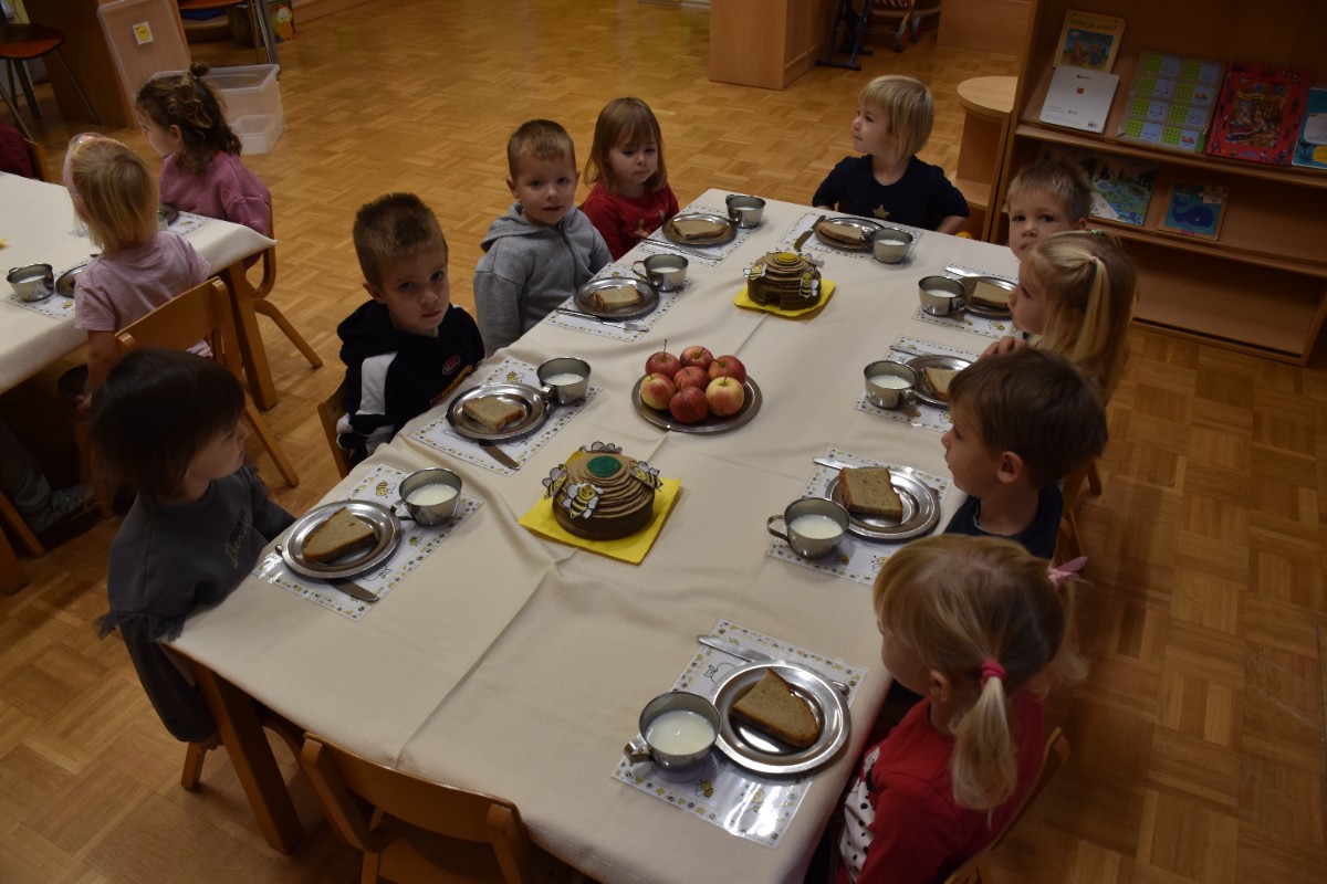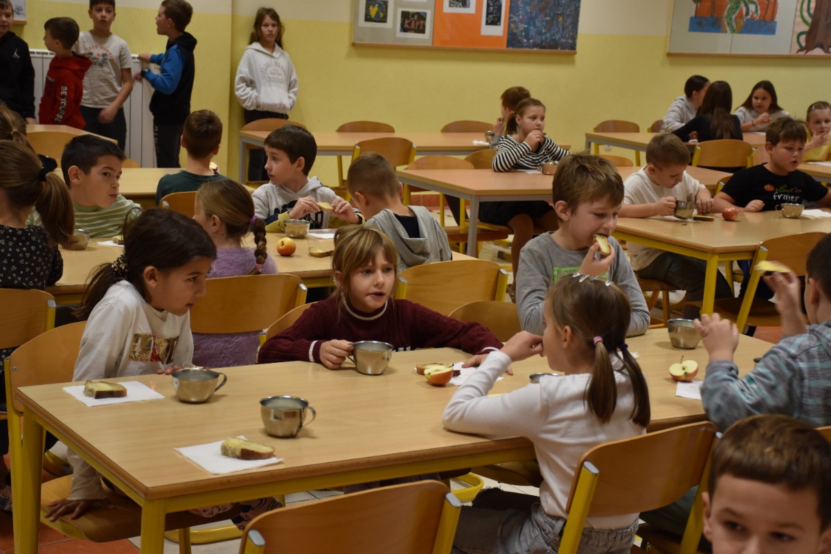 V tednu od 17. 11. 2025 do 21. 11. 2025 smo obeležili teden slovenske hrane, ki se je v petek zaključil s tradicionalnim slovenskim zajtrkom. Letošnja osrednja tema je bila Moja izbira je slovenska hrana. Za tradicionalni slovenski zajtrk so mleko pripeljali s kmetije Kocbek, med smo prejeli od lokalnih čebelarjev, maslo so v mlekarni izdelali iz slovenskega mleka, domači kruh in jabolka pa so bila prav tako iz našega okoliša. Po zajtrku so se po razredih odvijale različne dejavnosti. Učenci prve triade so ustvarjali, v telovadnici jih je čakal razgiban poligon, kasneje pa jih obiskal čebelar. V ostalih razredih so prav take potekale različne aktivnosti. Učence so obiskali različni lokalni dobavitelji, Mateja Kocbek, s kmetije Kocbek, Matej Goznik, dobavitelj lokalnega sadja, gospa Gabrijela Škamlec in gospod Igor Škamlec, dobavitelja lokalnih testenin. Nekateri so z društvom kmečkih žena Voličina pripravili okusne slane rogljičke. Obiskala nas je gospa dietetičarka in nas podučila o zdravem prehranjevanju. Nekateri učenci so spekli beljakovinske palačinke v gospodinjski učilnici, medtem pa so drugi raziskovali razlike med posameznimi vrstami medu. V letošnjem šolskem letu smo se pri krožku čebelarstvo razveselili čisto pravega čebelnjaka, s katerim lahko učencem še bolj nazorno prikažemo dejavnost čebelarjenja, pohvalimo pa se lahko s prvim medom OŠ Voličina, ki so ga pridelale naše čebele.