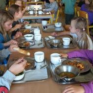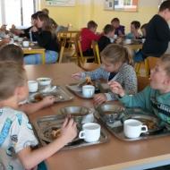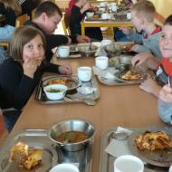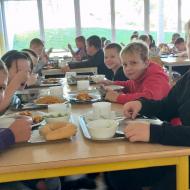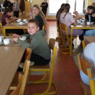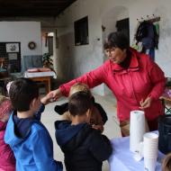 Pri izbirnem predmetu Sodobna priprava hrane, smo se z učenci peš odpravili na kmetijo Kocbek. Kot vsako leto nas je tudi letos družina zelo lepo sprejela. Gospa Mateja nam je razkazala prostore, kjer izdelujejo mlečne izdelke (jogurte, sire ...). Bili smo pazljivi, da smo stopali po točno označeni podlagi, saj je celotno delavnico zaščitila. Po ogledu se je učencem zastavilo veliko vprašanj, na katera so dobili odgovore iz prve roke. Preden smo zapustili kmetijo, smo okusili tudi njihove izdelke. Večina je prvič probala sirotko in njihove okusne jogurte. Učencem so bili zelo všeč sadni jogurti in jogurt s koščki čokolade. Dobili so tudi v dar sadni jogurt in recept, kako sami izdelajo kislo mleko ter vse potrebne surovine za izdelavo le tega. Po končanem ogledu smo se nasmejani z avtobusom vrnili v šolo. Vsi smo bili enotnega mnenja, da še pridemo po njihove izdelke na domočijo ali v avtomat z lokalnimi dobrotami, ki je pri bivši pošti v Lenartu.