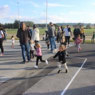 V našem vrtcu smo izvedli tradicionalni množični tek otrok, pri katerem so sodelovale vse skupine – od najmlajših do najstarejših. Otroci prvega starostnega obdobja so se preizkusili na krajši progi, ki je bila pripravljena na parkirišču pred vrtcem. S svojim veseljem in vztrajnostjo so dokazali, da tudi najmlajši že zmorejo premagati športni izziv.