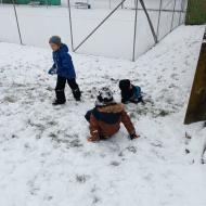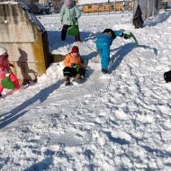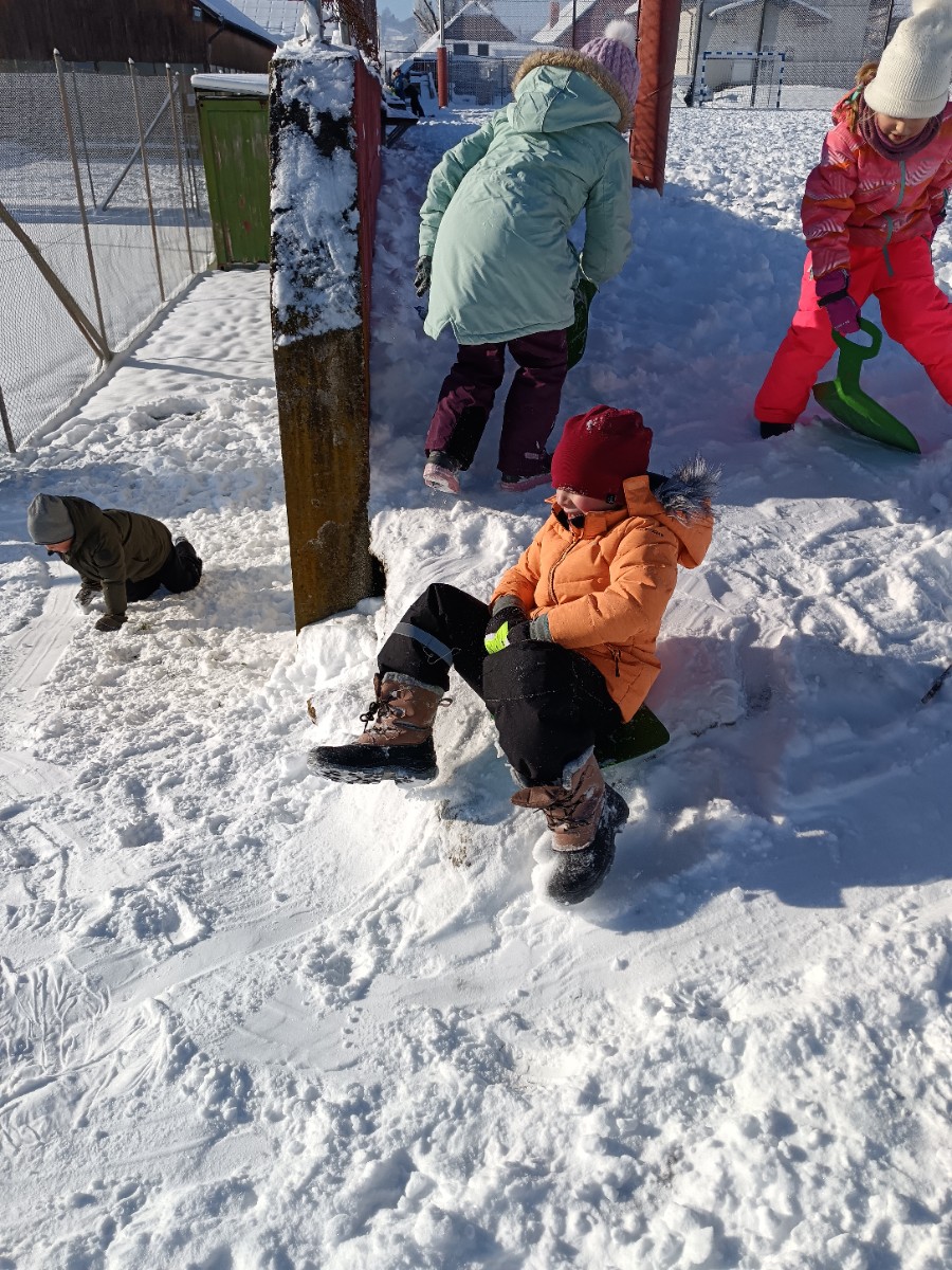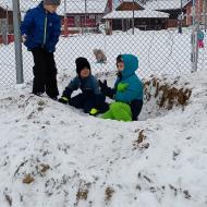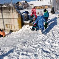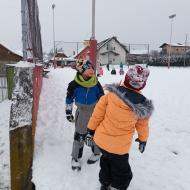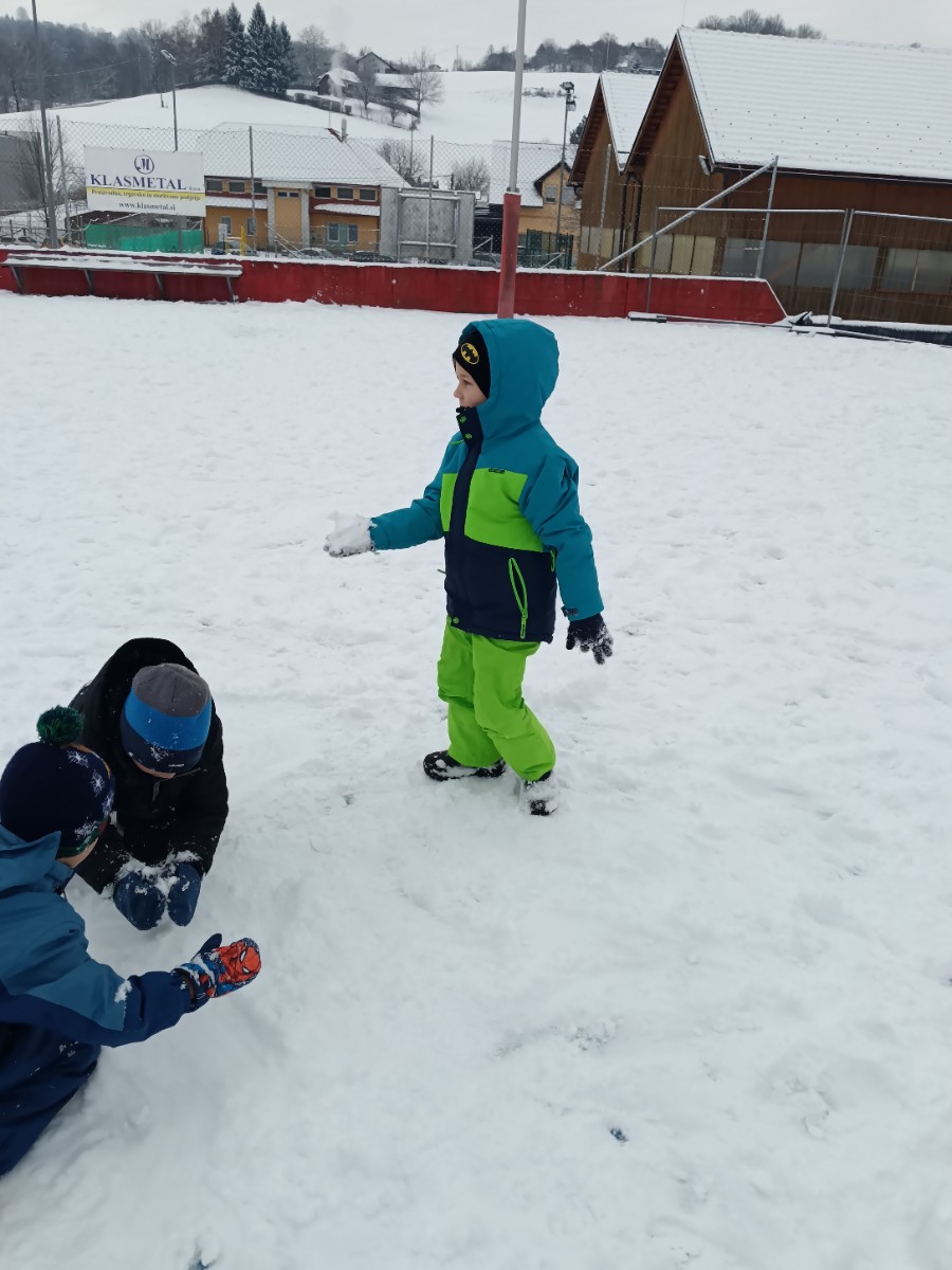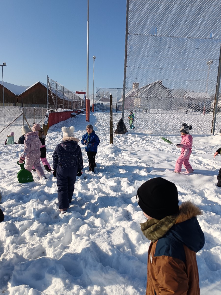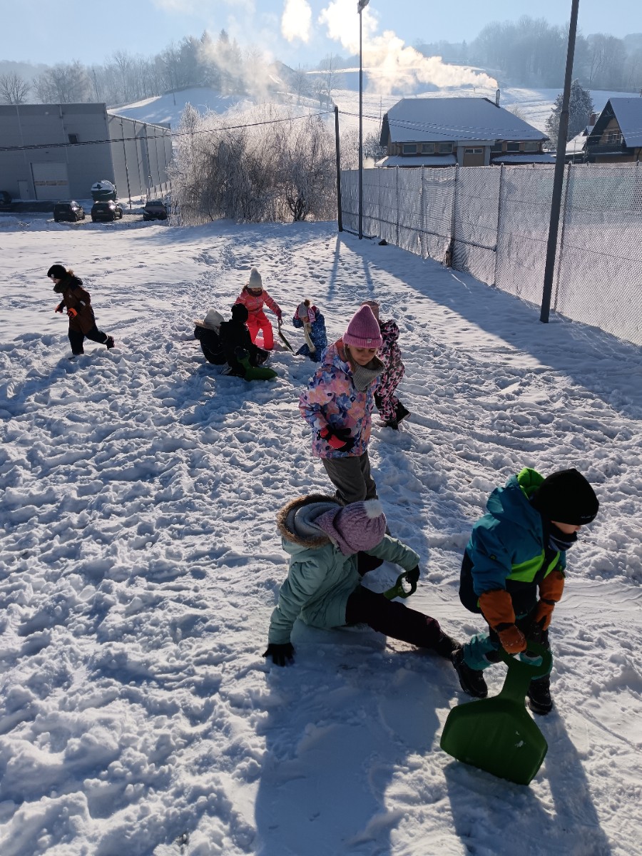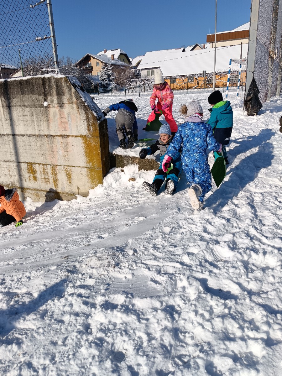 Zaradi nedelujočega ogrevanja v telovadnici smo večino tega tedna preživeli zunaj, na snegu. Nekateri so poprijeli za lopate, drugi za sani, spet tretjim pa niti sneg ni bil ovira za igro z žogo.
