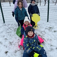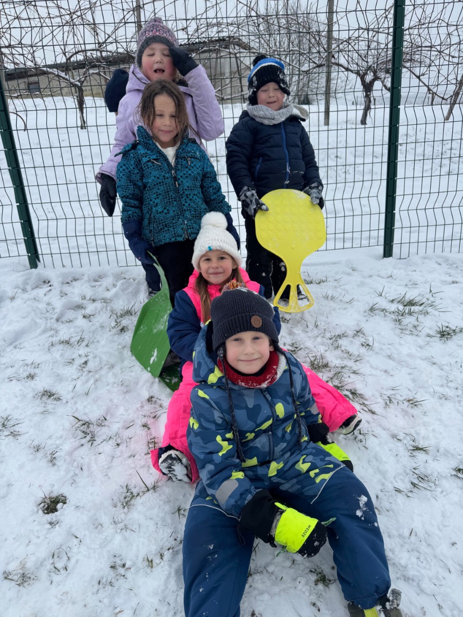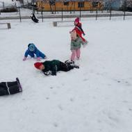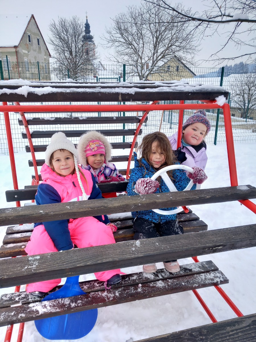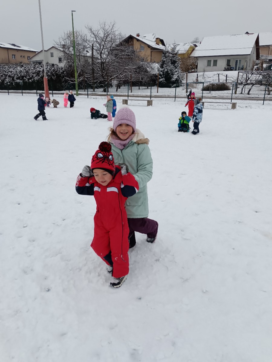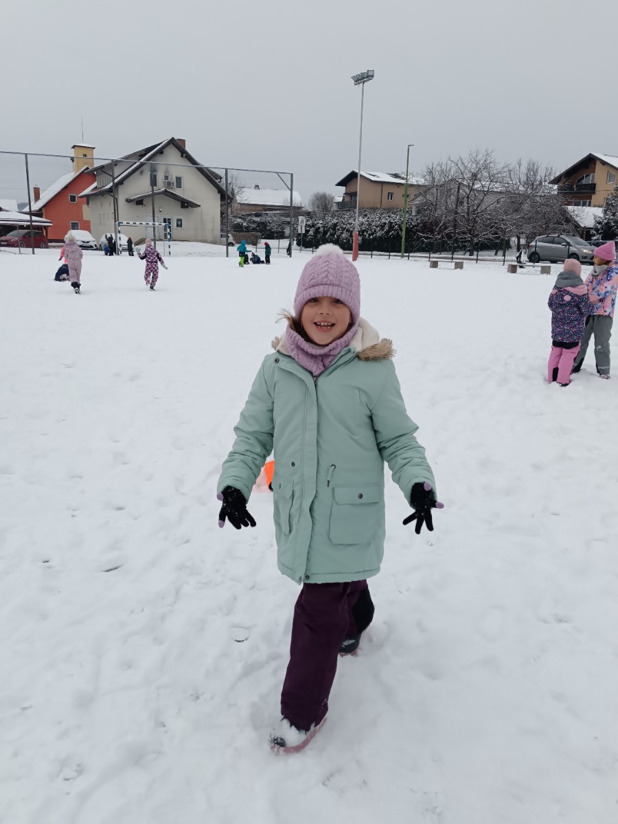 Pa smo ga dočakali. Sneg, ki pri otrocih nariše iskrene, nagajive, igrive nasmeške na obraz, pri odraslih pa sproži malce nelagodja ob mislih na zasnežene ceste. Prvošolci so se ga res zelo razveselili in v zimskih radostih uživali na polno. Ni zmanjkalo energije ob podenju po snegu, kepanju, gradnji gradov in seveda lopatkanju. Pripravili so si odlično progo, za katero so skrbeli posebni vzdrževalci. Bilo je veliko smeha in obilo zabave, zato upamo, da nam bo zima postregla še s kakšno pošiljko snega.