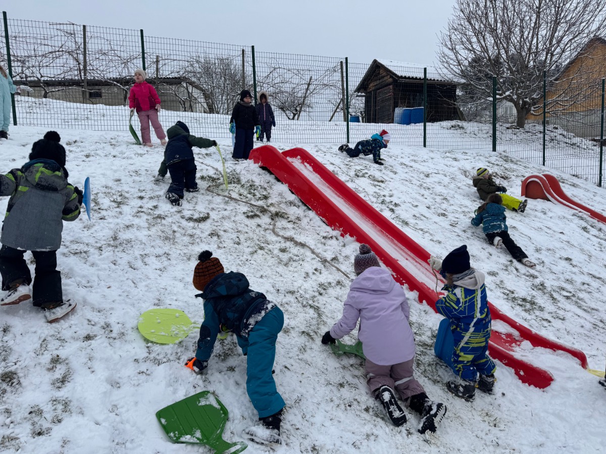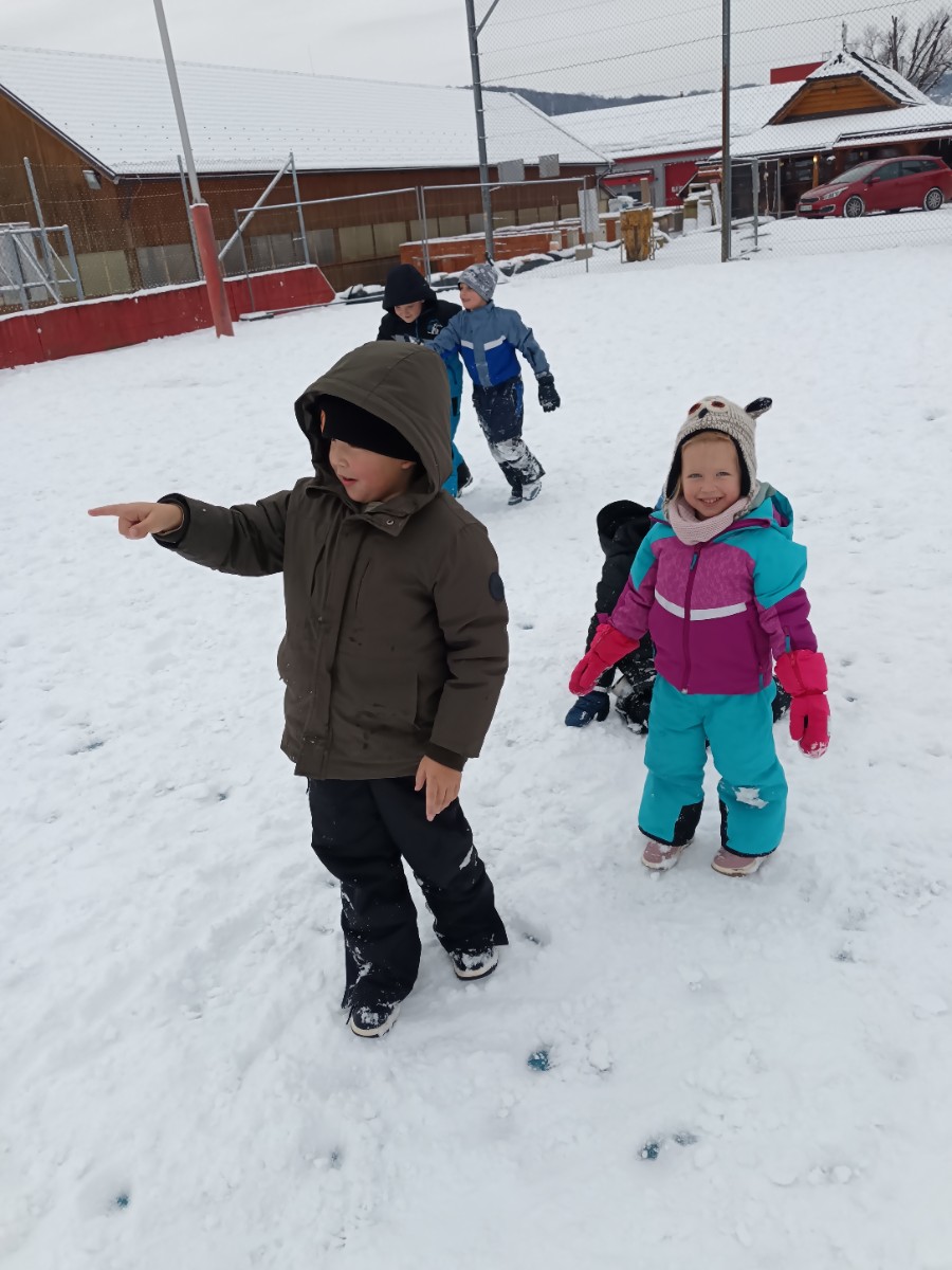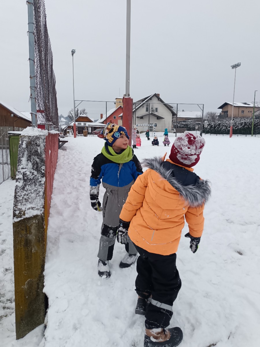 Zimski dnevi, prekriti s snežno odejo, so k Utrinkom prinesli obilo veselja, gibanja in ustvarjalnosti. Otroci so z navdušenjem stopili na sneg ter se prepustili zimskim radostim. Po dopoldnevih polnih spuščanja po klancu, ustvarjanju različnih oblik iz snega ter kepanju je bil pogled na rdeča lička in noske, ob vrnitvi v topel vrtec res nekaj posebnega.