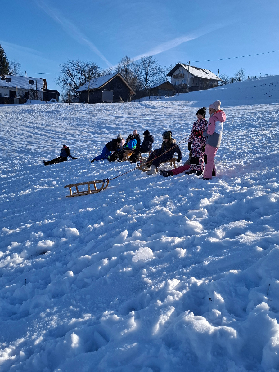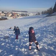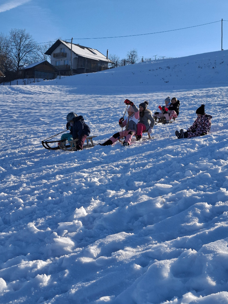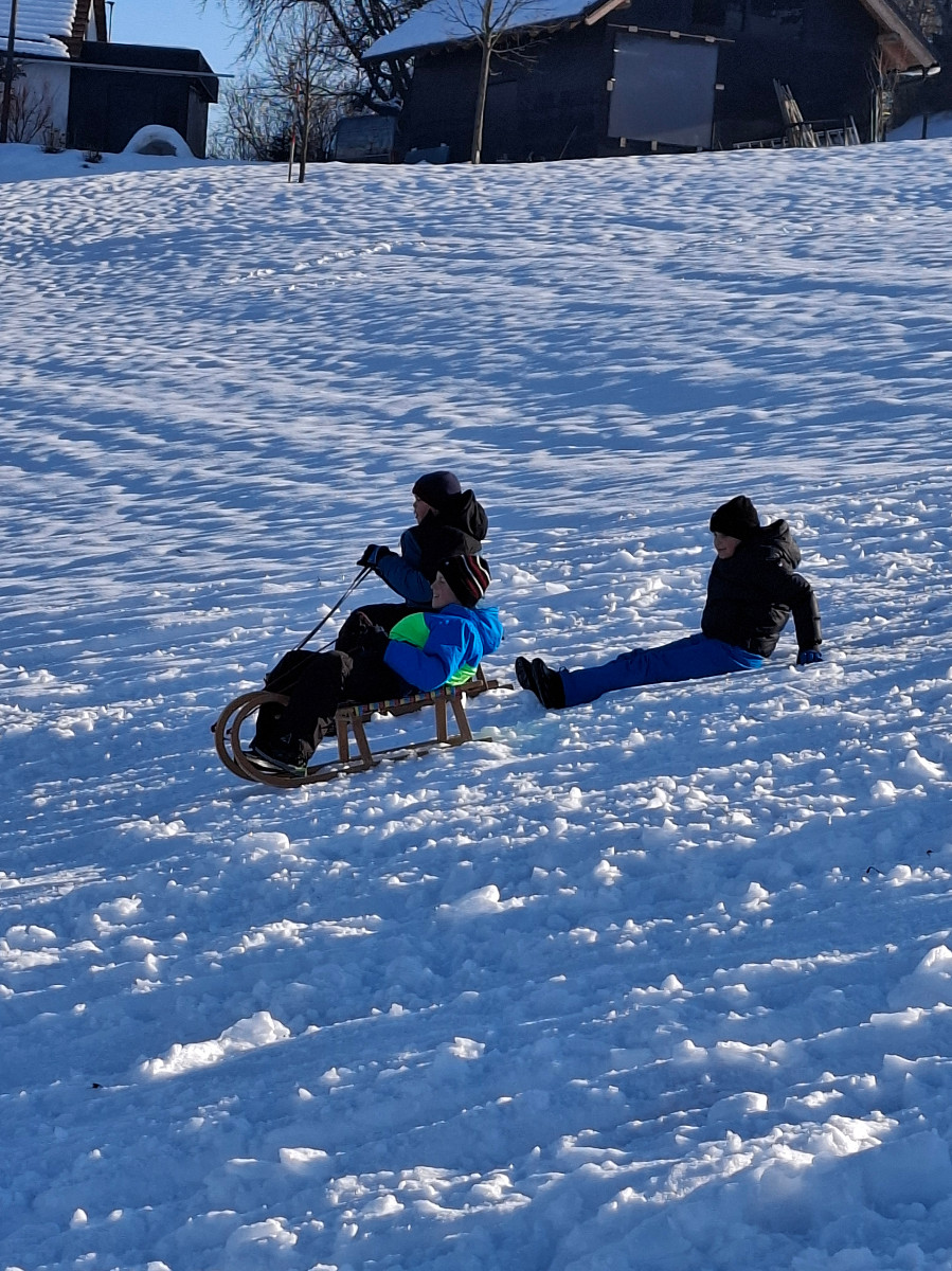 Ker je tokratna zima zelo radodarna s snegom, smo razmere seveda izkoristili za sankanje na najrazličnejše možne načine in se pri uri RaP Šport odpravili na bližnji hrib.