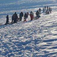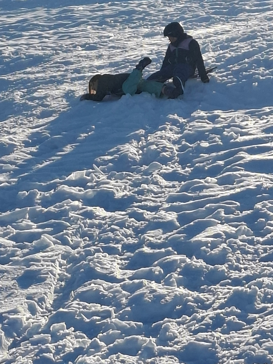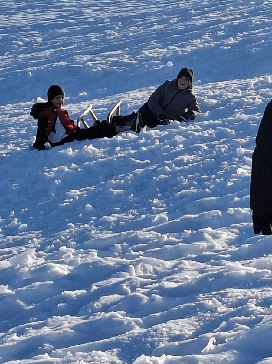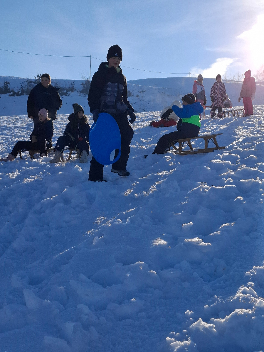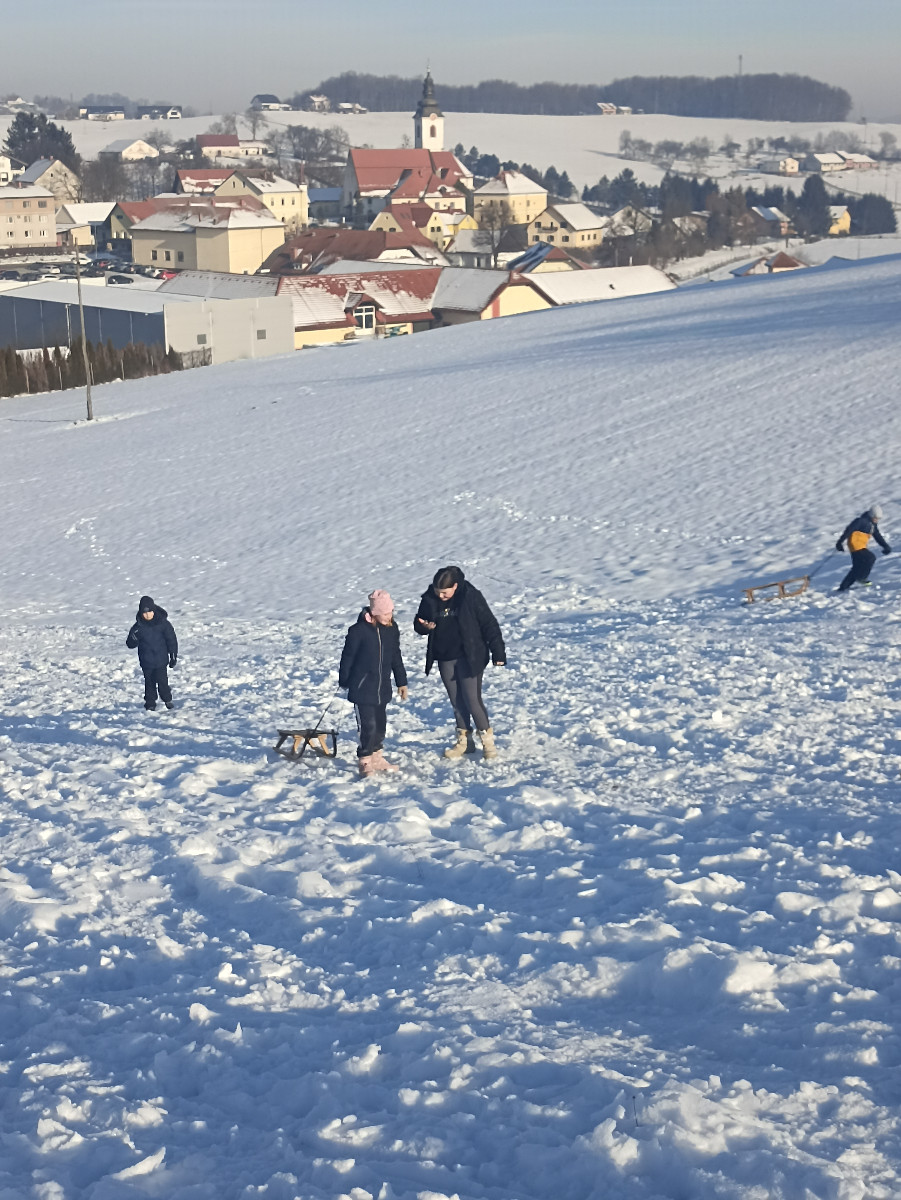 Ker je tokratna zima zelo radodarna s snegom, smo razmere seveda izkoristili za sankanje na najrazličnejše možne načine in se pri uri RaP Šport odpravili na bližnji hrib.