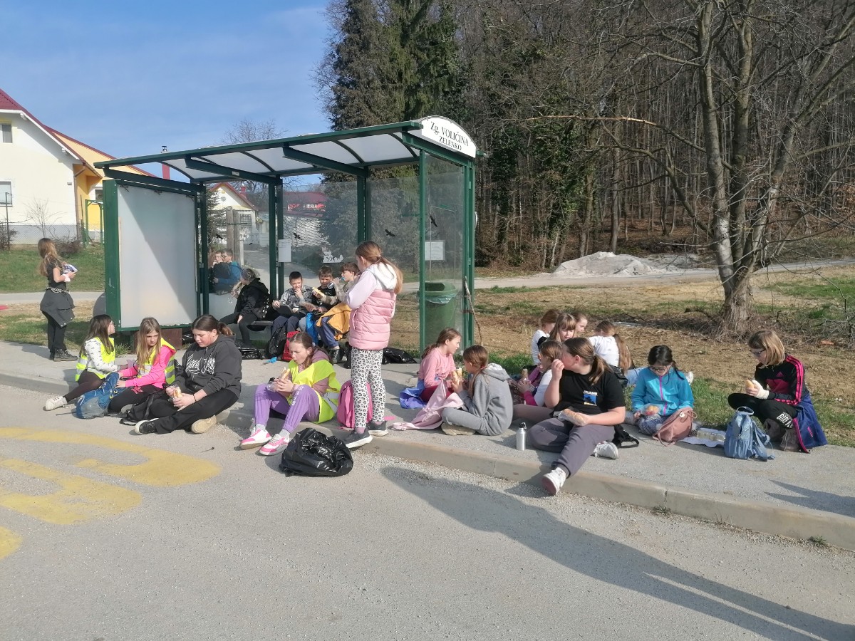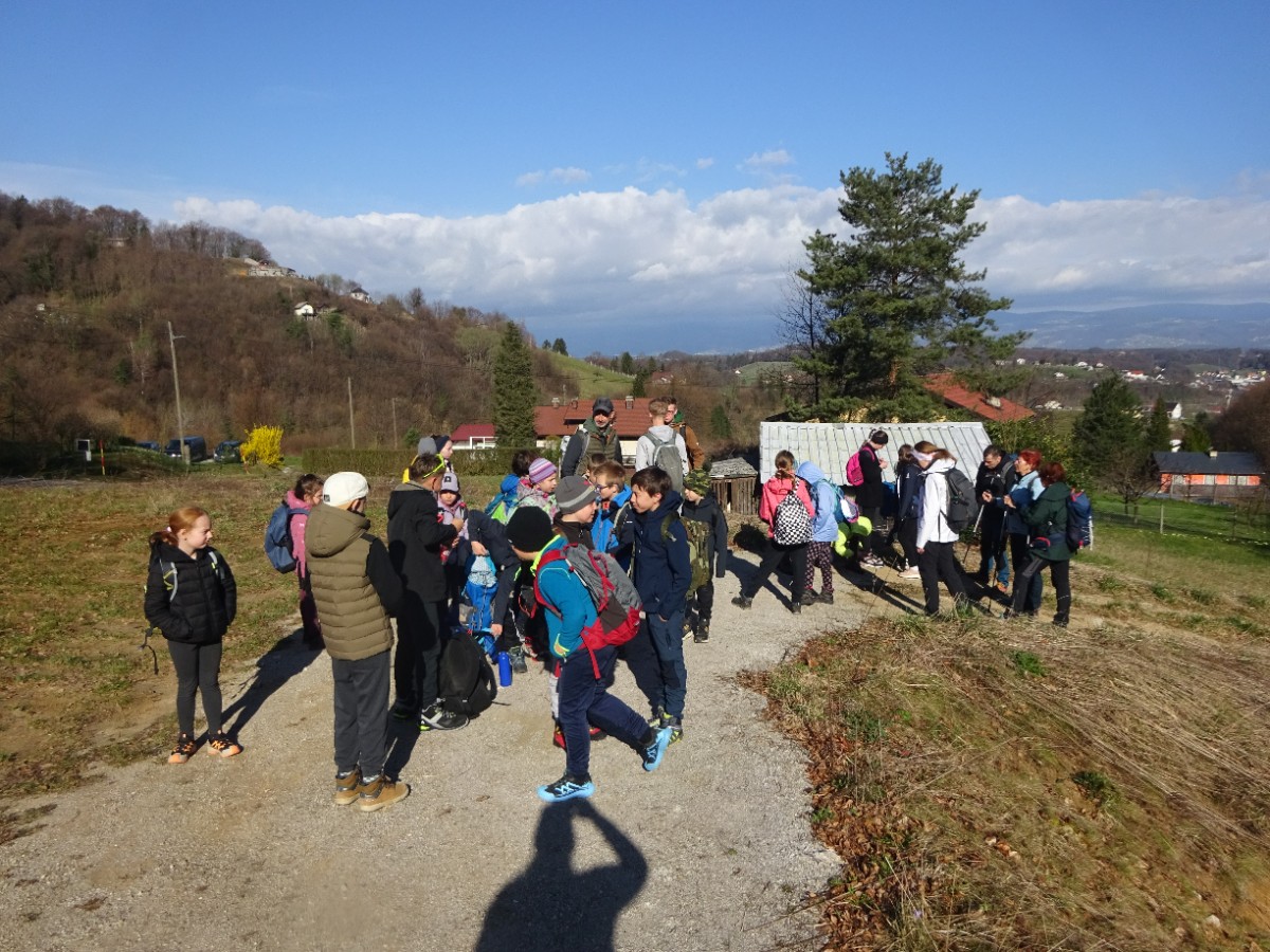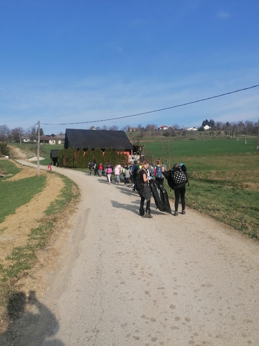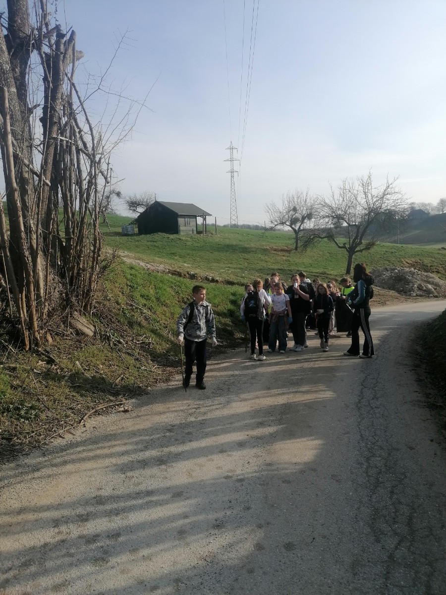 Učenci 4. a in 4. b razreda smo se odpravili na pohod, med katerim smo pridno pobirali smeti. Na poti smo si vzeli čas tudi za malico, ki smo jo prinesli kar v svojih nahrbtnikih. Okrepčani smo z veseljem nadaljevali svojo nalogo.