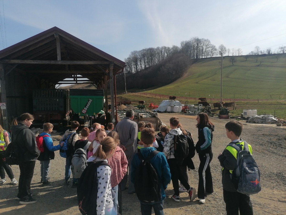 Posebno doživetje nas je čakalo na kmetiji Bezjakovih, kjer smo si ogledali živali. Najbolj nas je navdušil novorojeni teliček, star le nekaj ur. Gospodarja smo z zanimanjem povprašali tudi o ostalih živalih na kmetiji in izvedeli veliko novega.