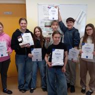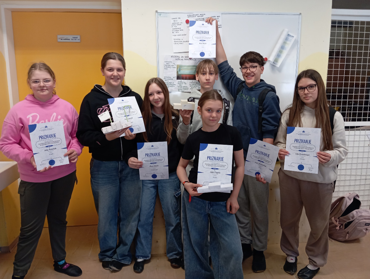Vložen čas, prizadevnost in marljivost se je izplačala saj so se prav vse 4 naše učenke iz državnega tekmovanja vrnile s priznanji. Avrelija Sužnik (9. razred), ki se ji je lansko leto zlato priznanje izmuznilo zgolj za eno točko, je na letošnjem tekmovanju uresničila svoj cilj in osvojila zlato priznanje. Prav tako zelo uspešne pa so bile učenke 8. razreda. Lara Matjašič, Liza Stergar in Eva Daks so se namreč iz državnega tekmovanja vrnile s srebrnim priznanjem. Lahko bi zapisali, da imajo njihova srebrna priznanja lesk po zlatem saj so bile vse tri zelo blizu zlatega priznanja. Lari je do zlatega priznanja zmanjkala zgolj točka, Lizi in Evi pa dve točki.