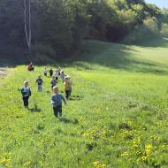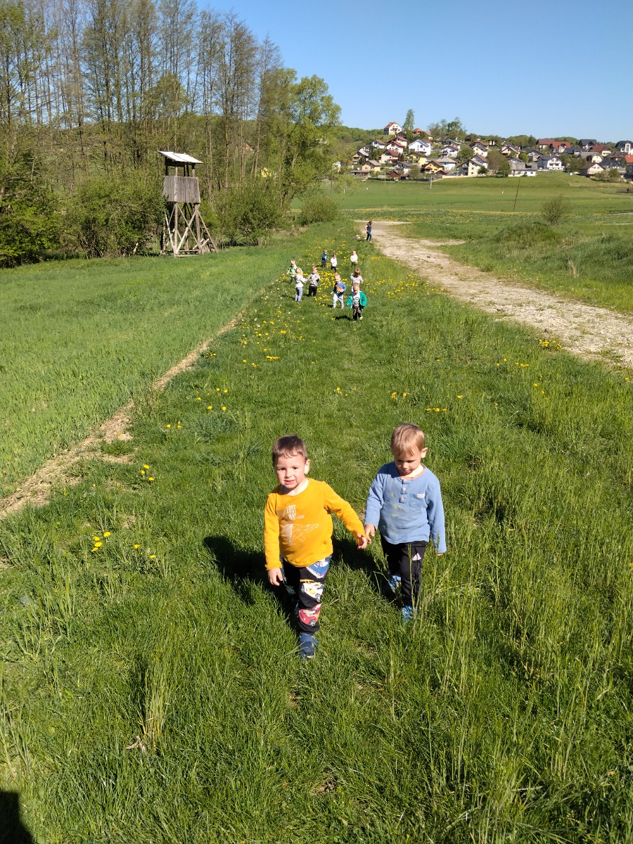 Fartlek je vadbena metoda za izboljšanje vzdržjivosti, ki združuje hitre in počasne odseke teka na razgibanem terenu. Tudi četrošolci so se preizkusili in pri tem zelo uživali. Ko so prišli do cilja, so opazovali domačo pokrajino in občudovali lepote narave. Sledilo je presenečenje z igro " JE KAJ TRDEN MOST? ". Će je ne poznate, vam jo z veseljem pokažejo. Kar povprašajte jih.