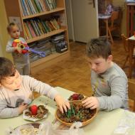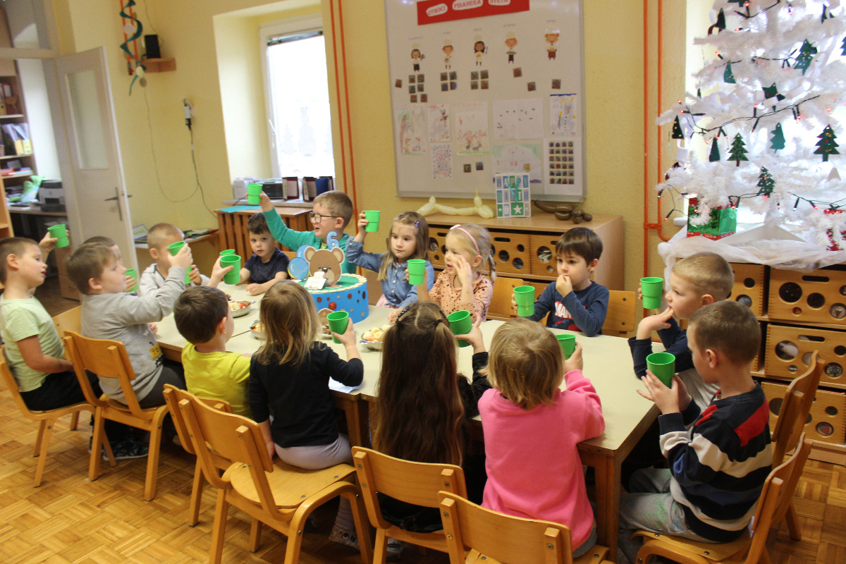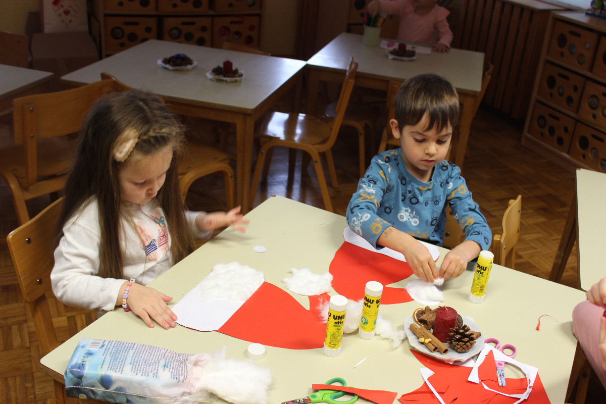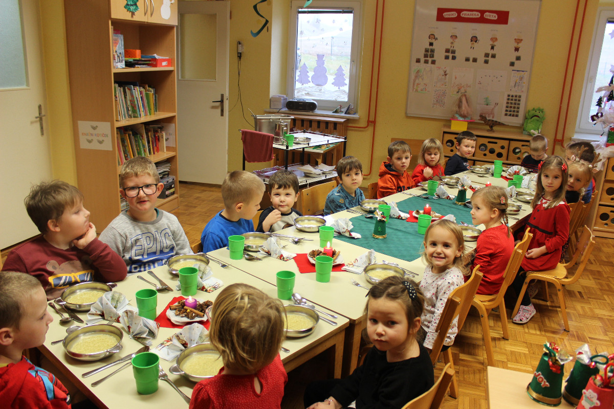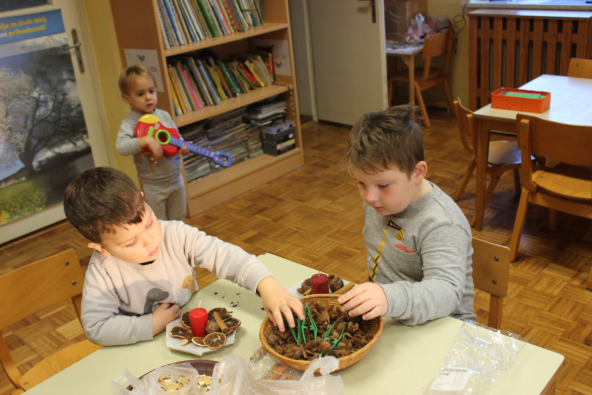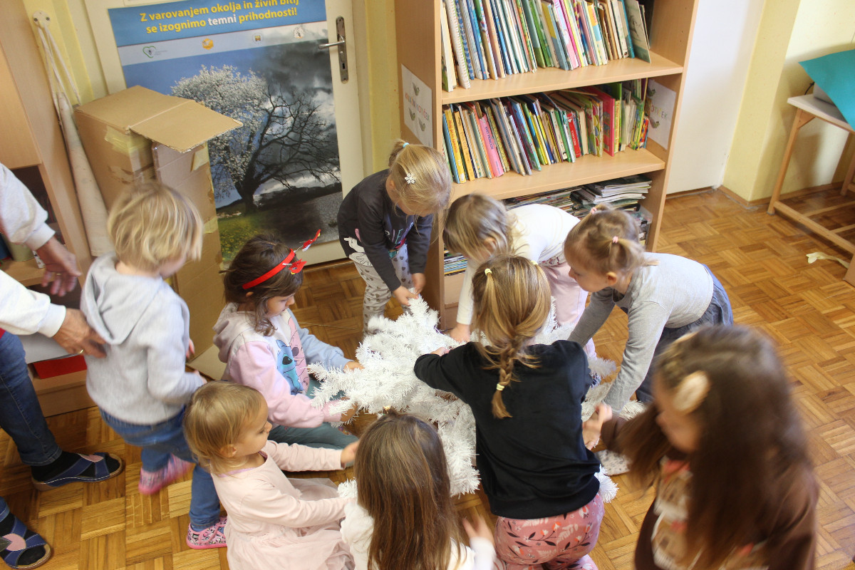 V vrtcu smo december preživeli v prazničnem in prijetnem vzdušju. Otroci so z veseljem sodelovali pri postavitvi smrečice ter izdelovanju okraskov, s katerimi smo okrasili novoletno jelko in igralnico. Veliko časa smo namenili likovnemu ustvarjanju, prepevanju prazničnih pesmi in rajanju, kar je še dodatno obogatilo decembrske dni. Posebno doživetje je bilo praznično kosilo, ob katerem smo se družili in uživali v toplini skupnih trenutkov. Otroci so z navdušenjem sodelovali tudi pri peki piškotov ter se predstavili na prireditvi Čas okrog božiča. Razveselil nas je Božiček, ki nas je obiskal v vrtcu, nas obdaril in pričaral nepozabne praznične trenutke.