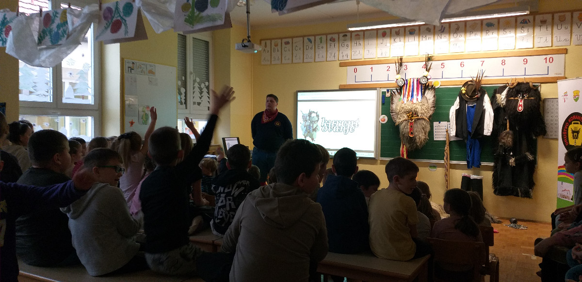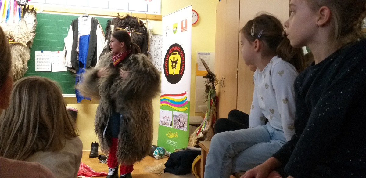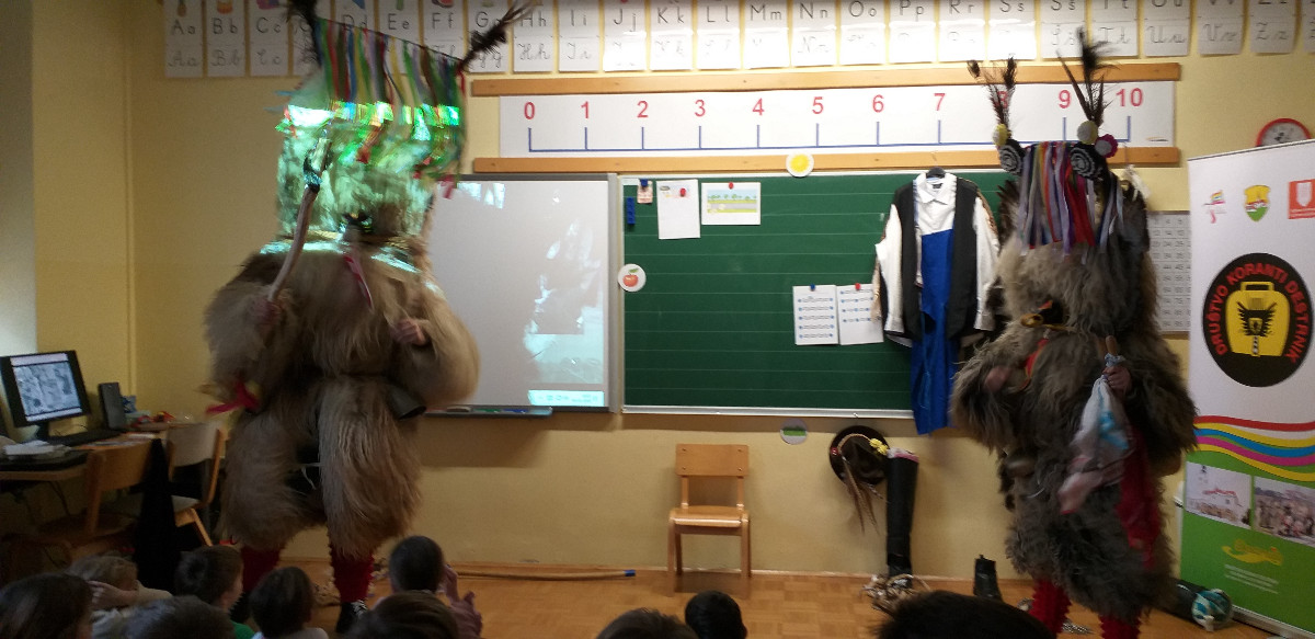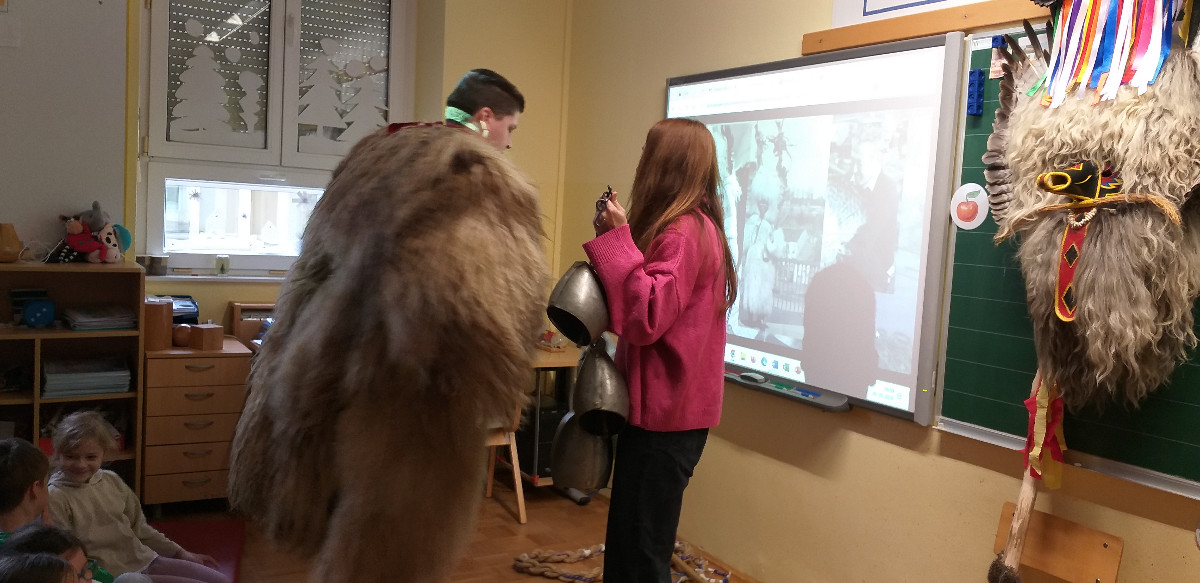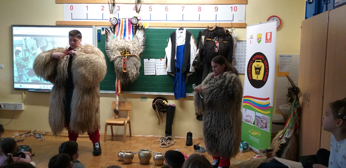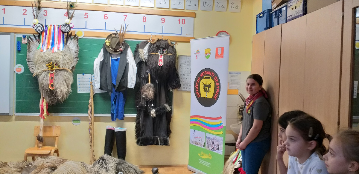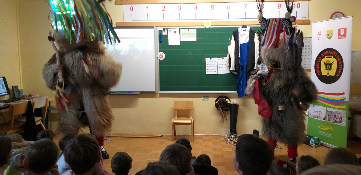 Danes sta člana Društva koranti Desternik za učence 1. vzgojno-izobraževalnega obdobja pripravila zanimivo in poučno predstavitev pustnih običajev ter avtohtonih pustnih likov, značilnih za naše okolje. Učenci so spoznali pustne like s Ptujskega in Dravskega polja, iz Haloz ter Slovenskih goric. Za zelo nazorno in podrobno predstavitev likov ter z njimi povezanih običajev je poskrbel naš nekdanji učenec Jan Rebernik, pri čemer mu je z veseljem pomagala šestošolka Lana Dolinar. Učenci so z velikim zanimanjem spremljali predstavitev in spoznavali bogato pustno dediščino, med njo in po njej pa postavljali številna vprašanja. Z nestrpnostjo smo pričakovali tudi letošnjega princa ptujskega karnevala, ki se žal zaradi drugih obveznosti predstavitve ni mogel udeležiti. Ob tej priložnosti vam posredujem še vabilo, da obiščete Ptuj. Na Mestnem trgu bodo od nedelje, 8. februarja 2026, do ponedeljka, 16. februarja 2026, potekali večerni prikazi avtohtonih pustnih likov. Več informacij je na voljo na spletni strani https://kurentovanje.net/