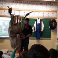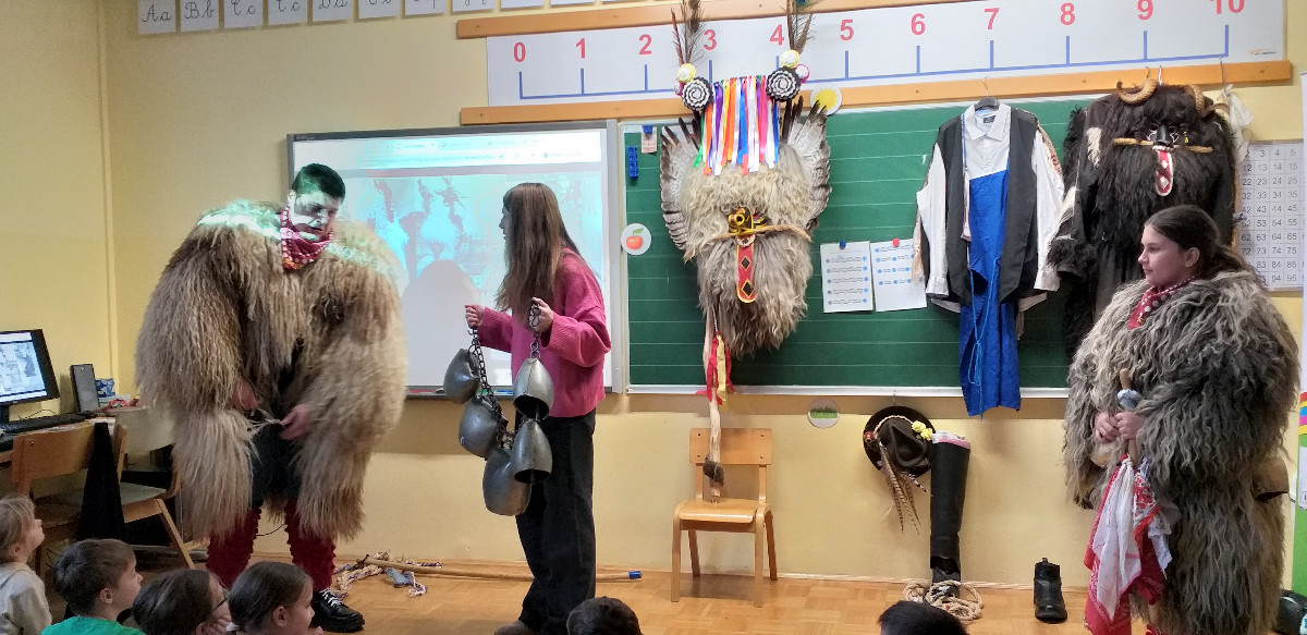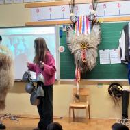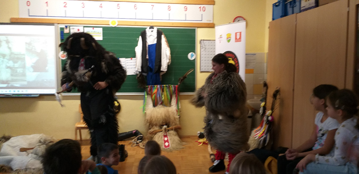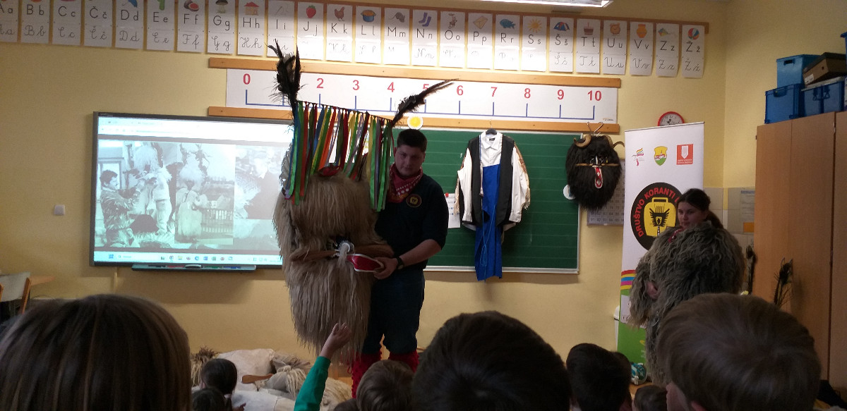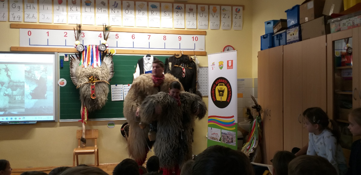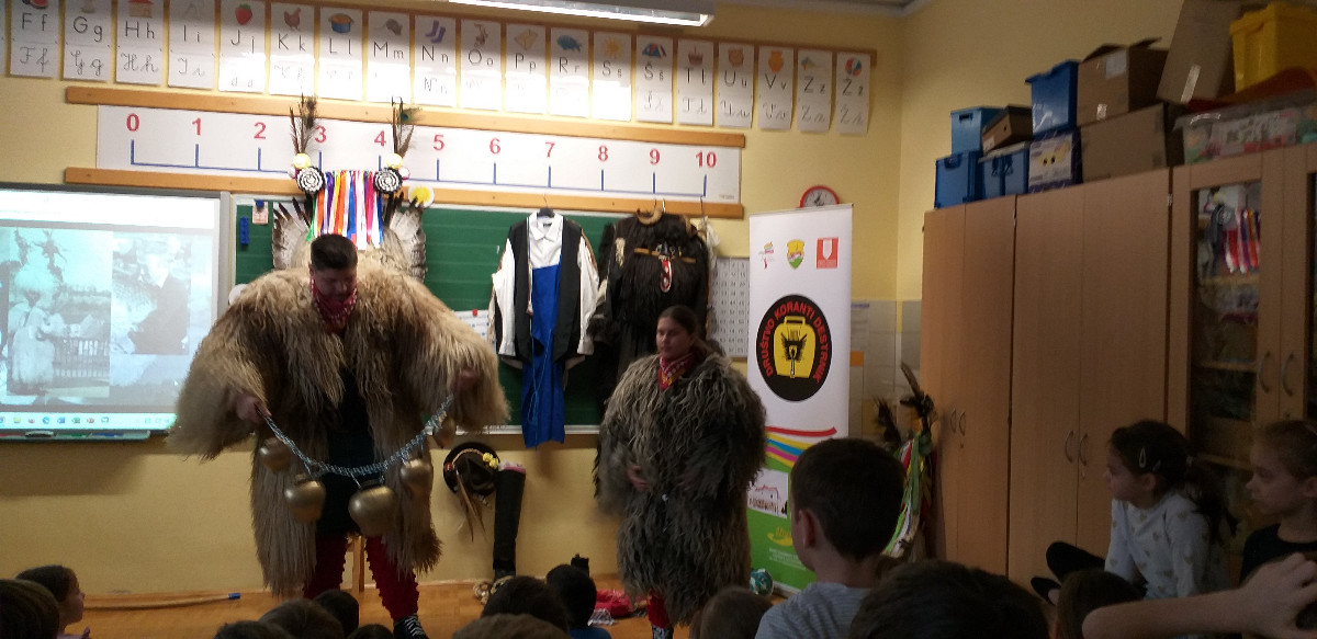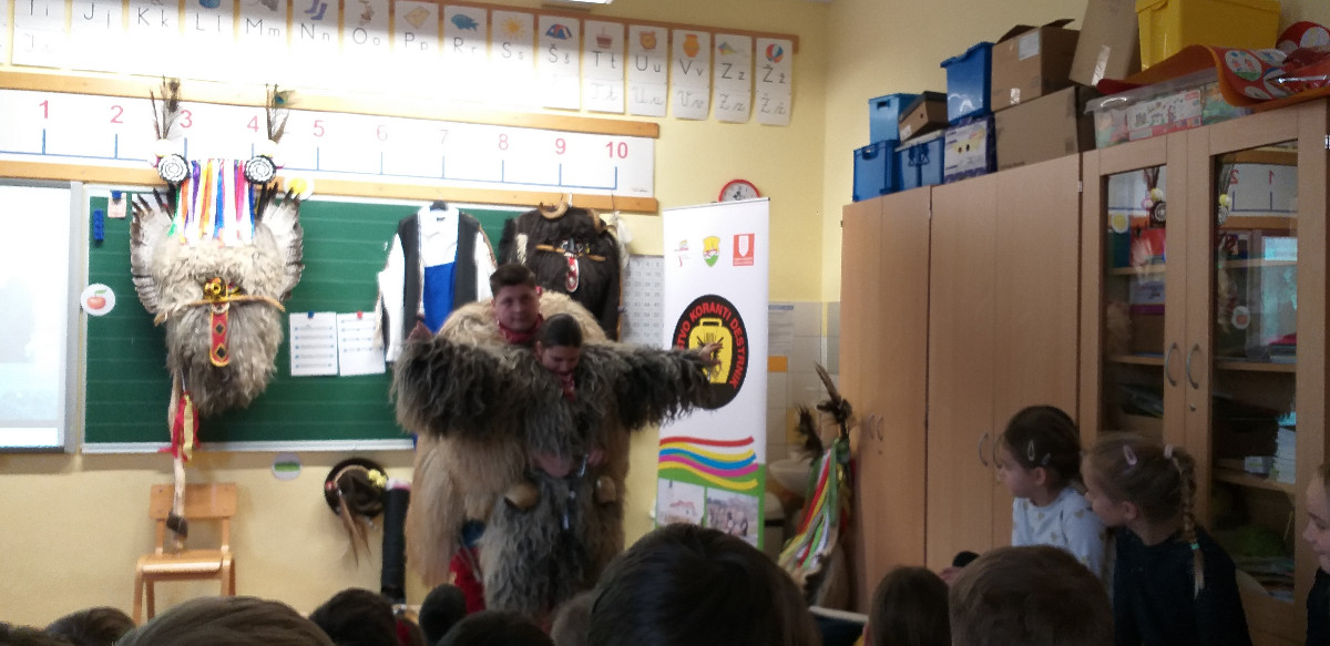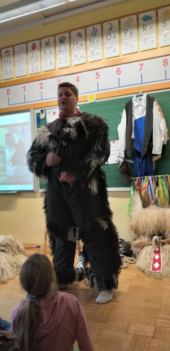 Danes sta člana Društva koranti Desternik za učence 1. vzgojno-izobraževalnega obdobja pripravila zanimivo in poučno predstavitev pustnih običajev ter avtohtonih pustnih likov, značilnih za naše okolje. Učenci so spoznali pustne like s Ptujskega in Dravskega polja, iz Haloz ter Slovenskih goric. Za zelo nazorno in podrobno predstavitev likov ter z njimi povezanih običajev je poskrbel naš nekdanji učenec Jan Rebernik, pri čemer mu je z veseljem pomagala šestošolka Lana Dolinar. Učenci so z velikim zanimanjem spremljali predstavitev in spoznavali bogato pustno dediščino, med njo in po njej pa postavljali številna vprašanja. Z nestrpnostjo smo pričakovali tudi letošnjega princa ptujskega karnevala, ki se žal zaradi drugih obveznosti predstavitve ni mogel udeležiti. Ob tej priložnosti vam posredujem še vabilo, da obiščete Ptuj. Na Mestnem trgu bodo od nedelje, 8. februarja 2026, do ponedeljka, 16. februarja 2026, potekali večerni prikazi avtohtonih pustnih likov. Več informacij je na voljo na spletni strani https://kurentovanje.net/