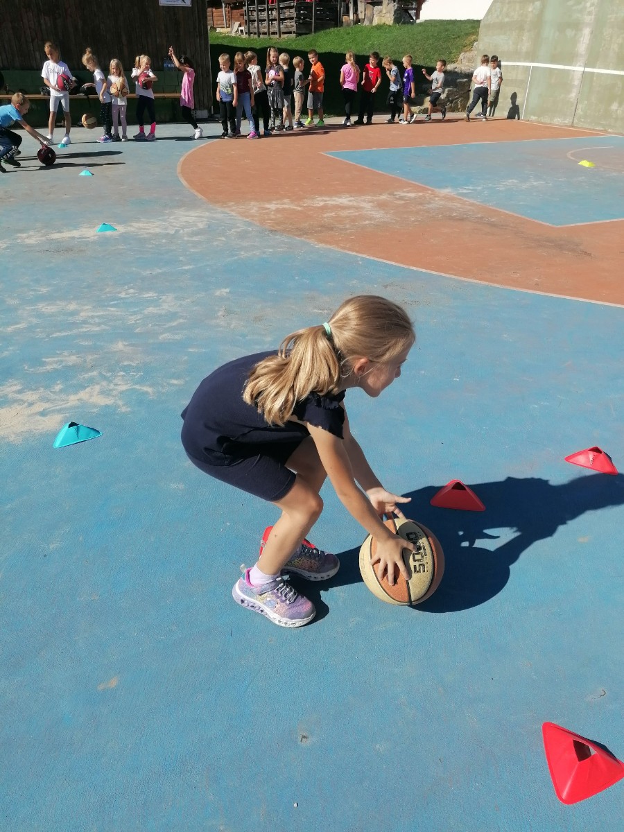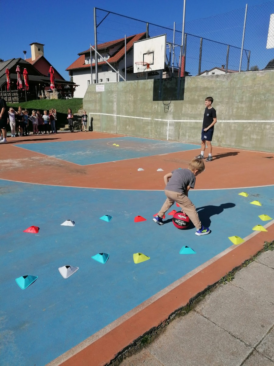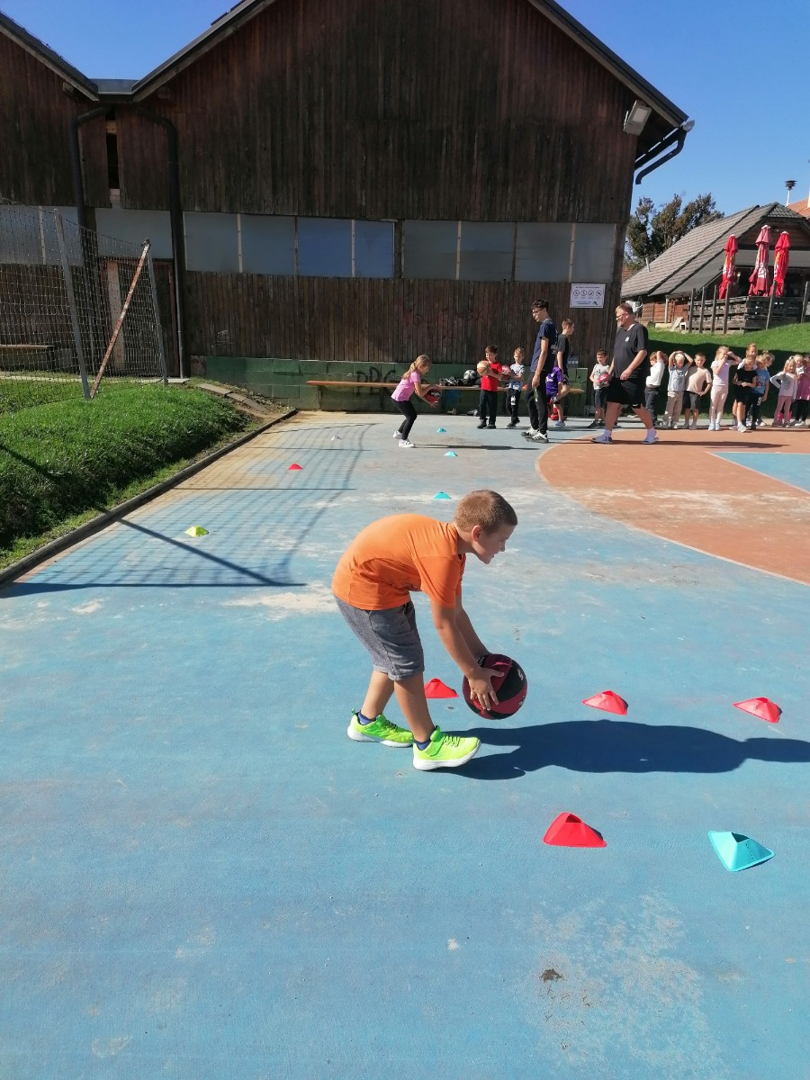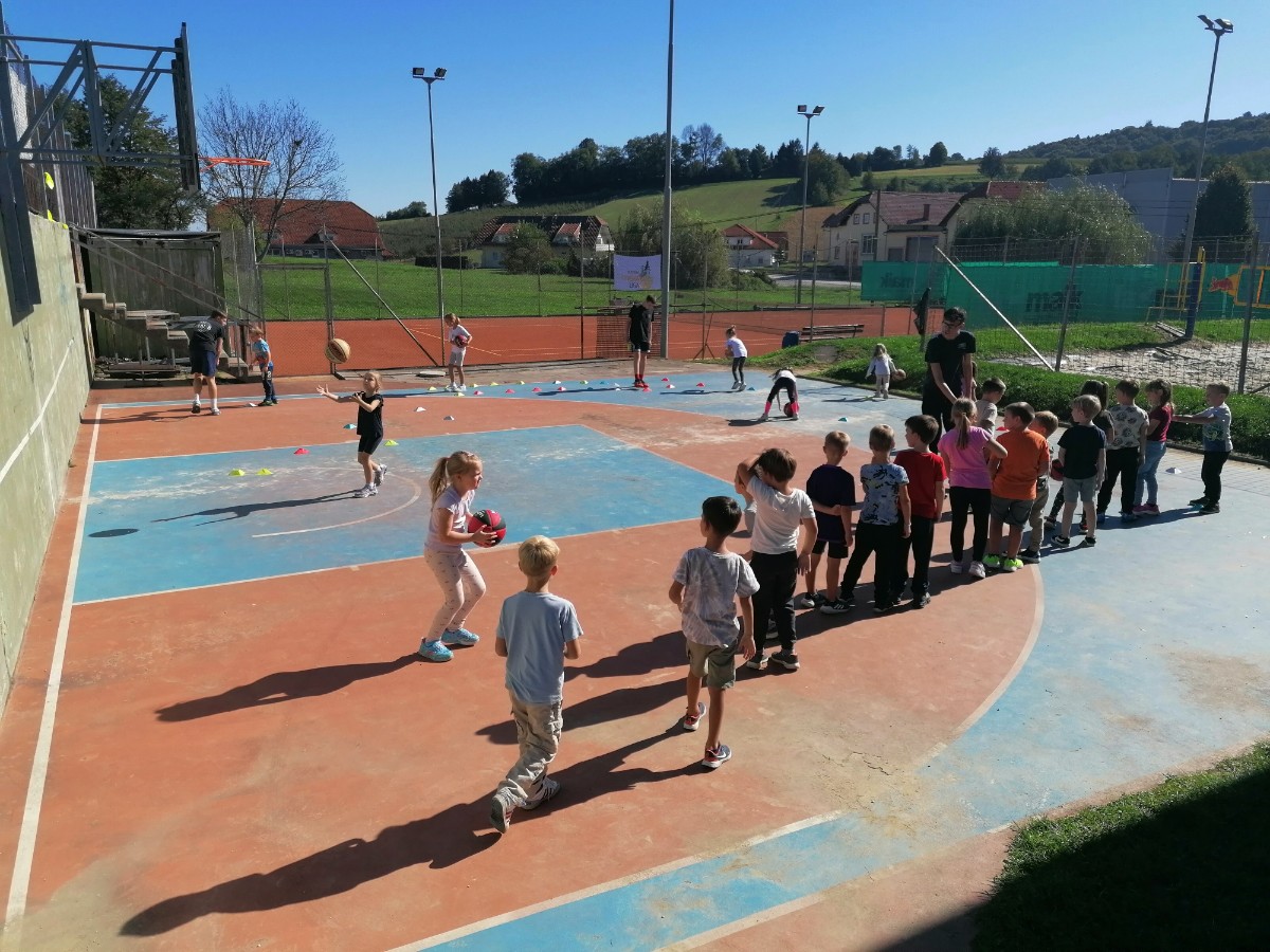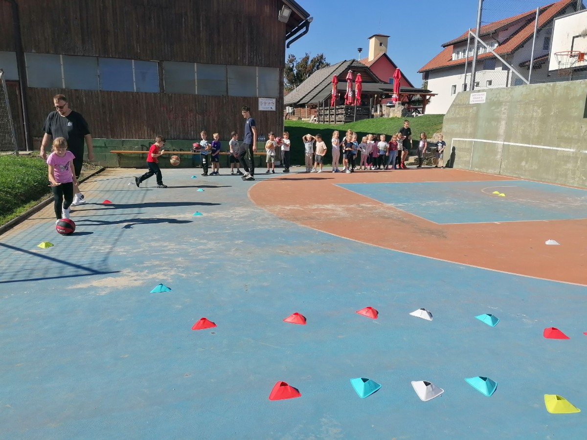 Tudi prvošolci so uživali v poligonu, ki so jim ga pripravili člani KK Ajdas Lenart. Vadili so vodenje in kotaljenje žoge, preigravanje in mete na koš. Mogoče bo tudi kdo izmed njih novi Luka Dončić.