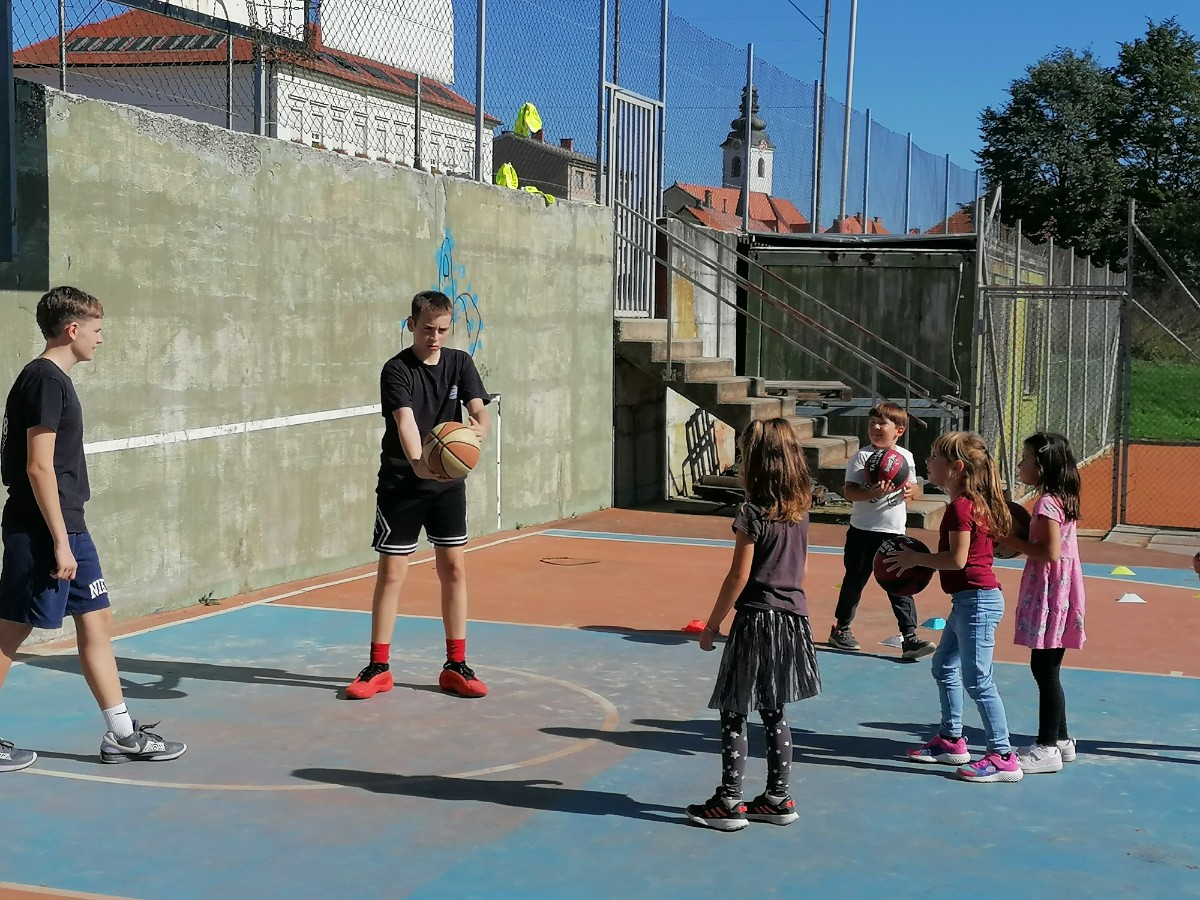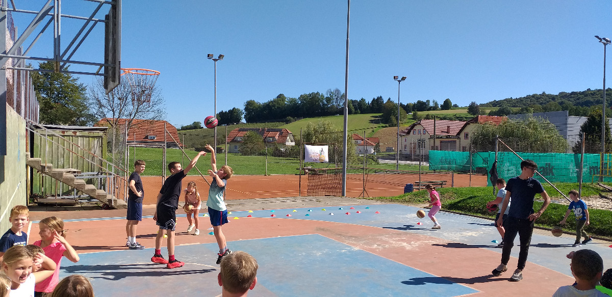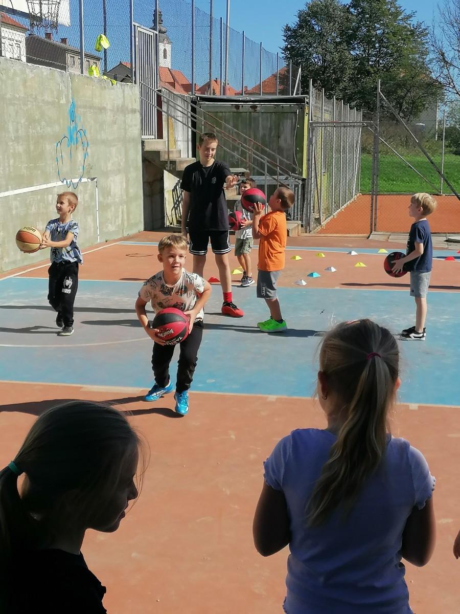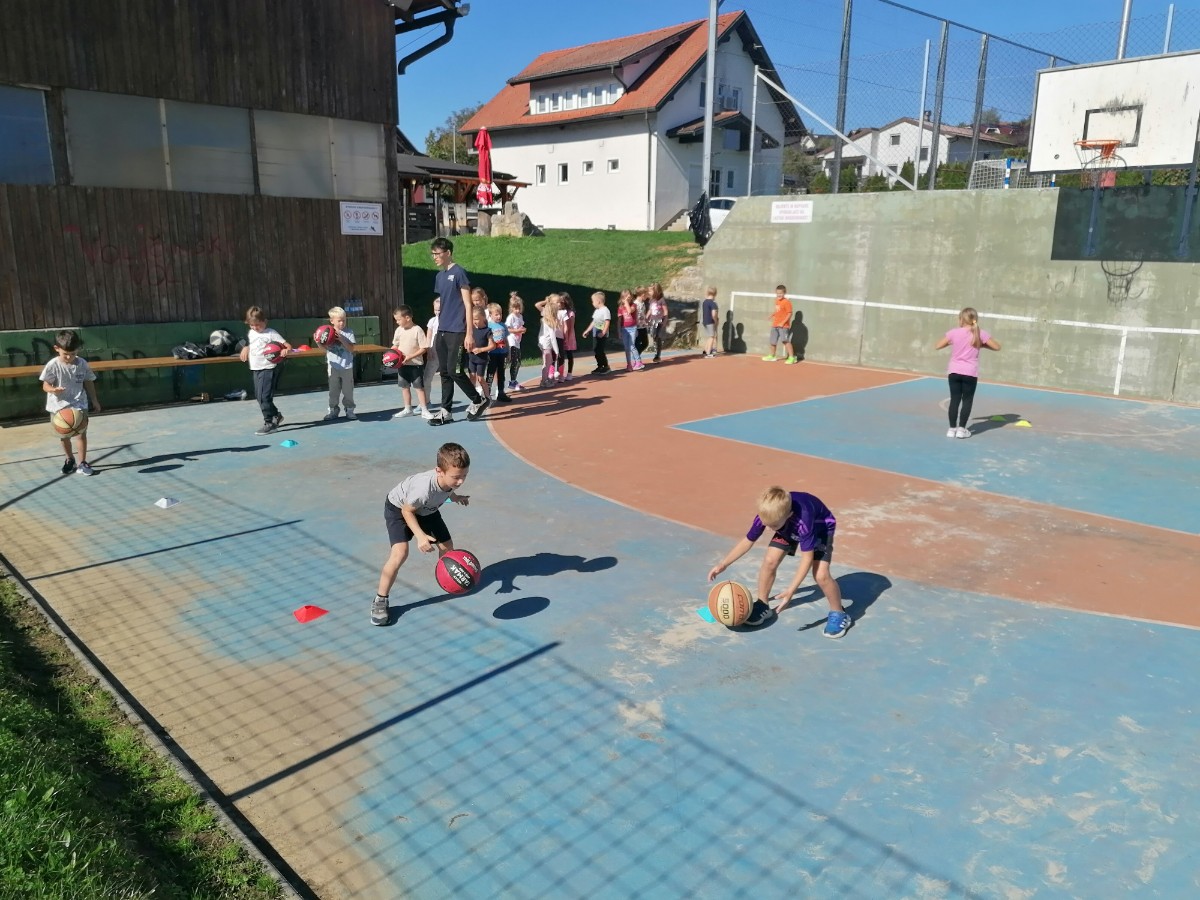 Veselo, zabavno, tekmovalno ... druženje z žogo in s košarkarji KK Ajdas iz Lenarta.