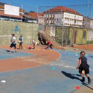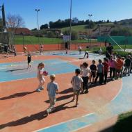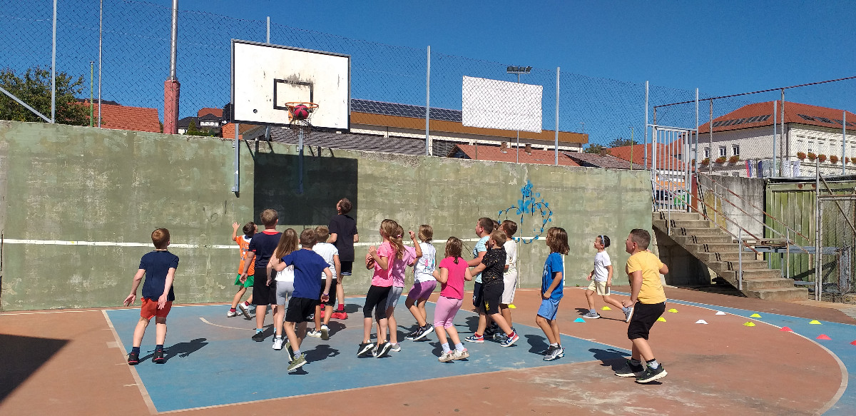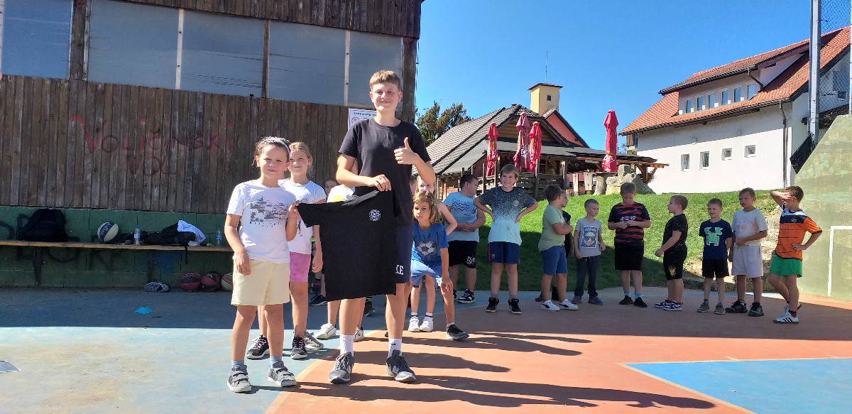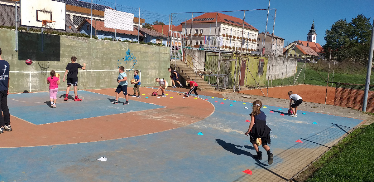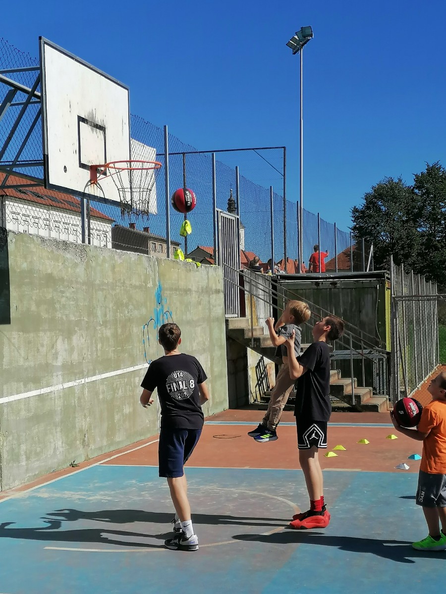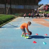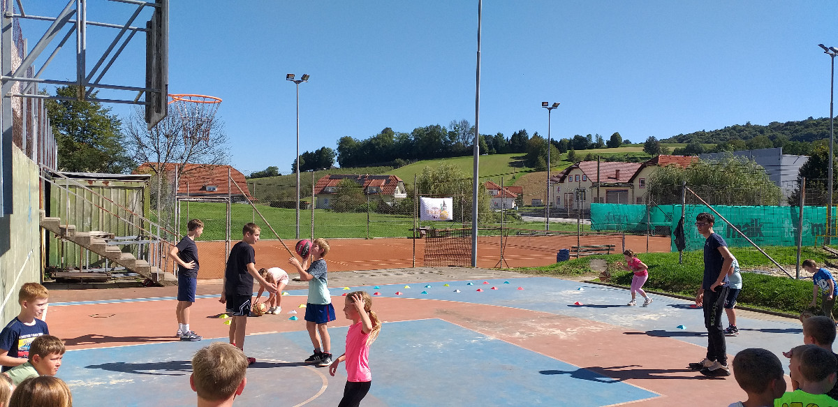 Veselo, zabavno, tekmovalno ... druženje z žogo in s košarkarji KK Ajdas iz Lenarta.