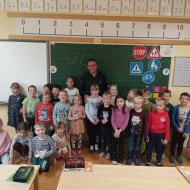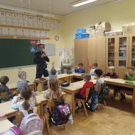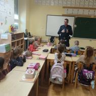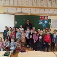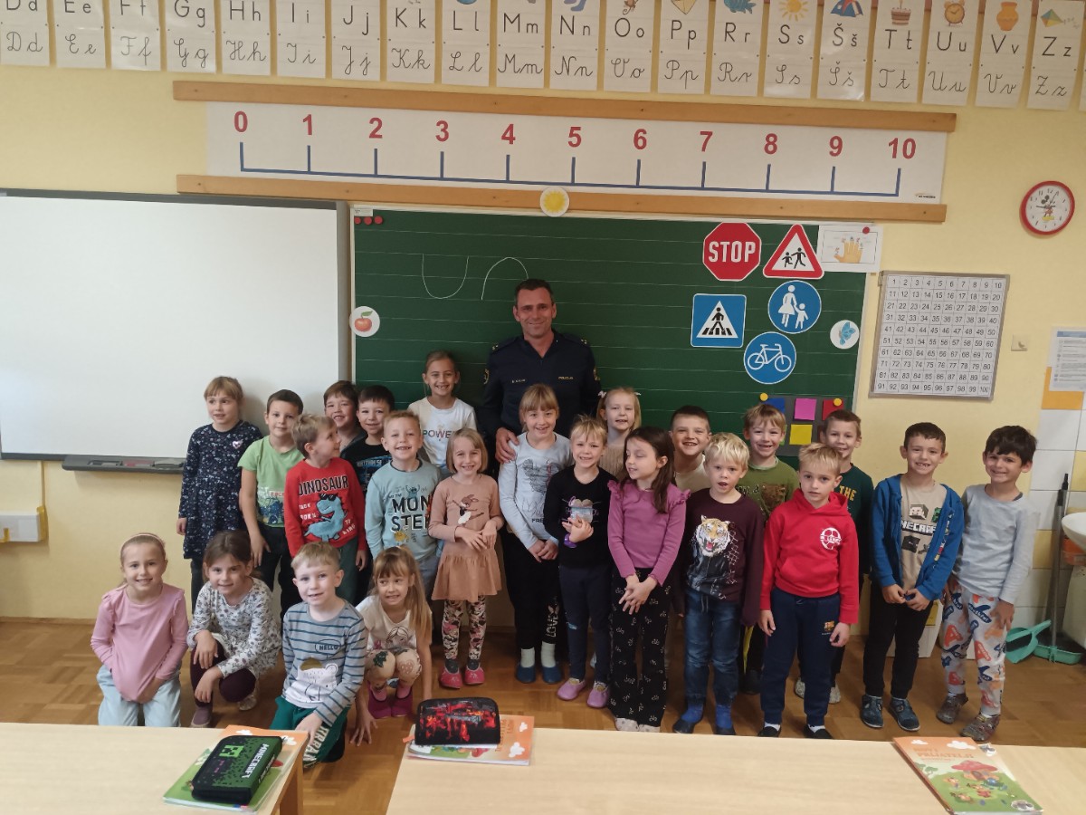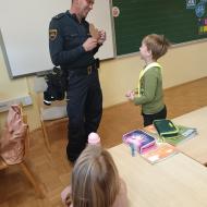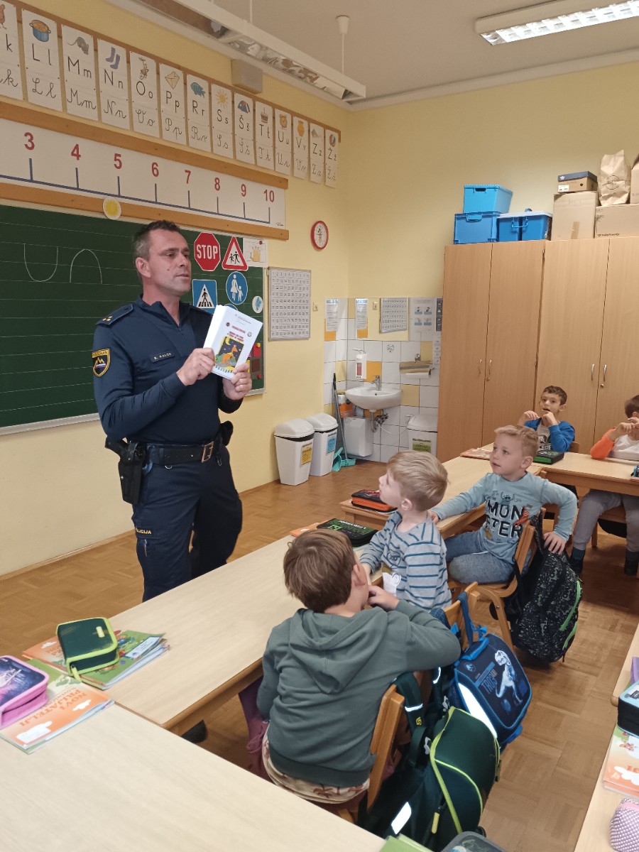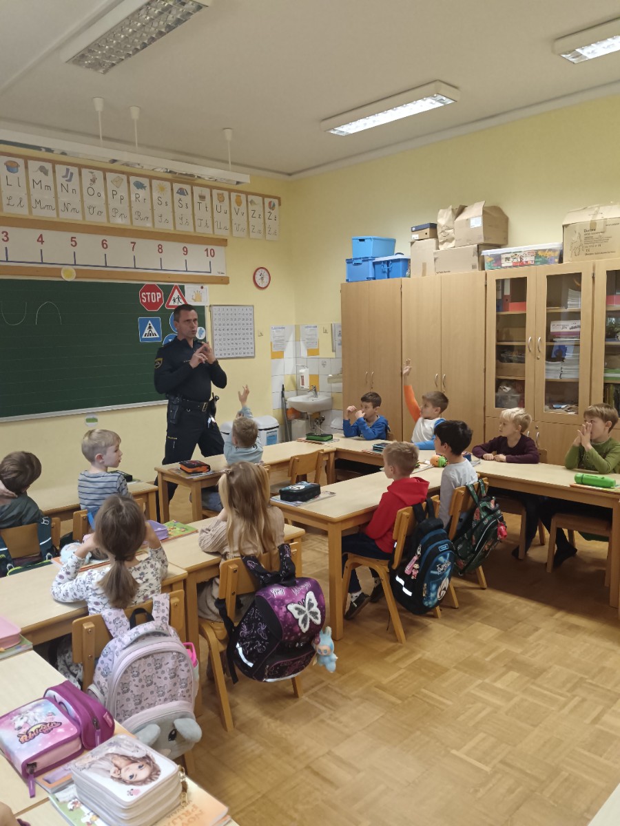 Varnost v prometu je zelo pomembna tema, s katero so se učenci 1. a že srečali. Na učnem sprehodu so opazovali prometno ureditev v okolici šole ter se naučili, kako pravilno prečkati cesto. Vedo tudi, zakaj je tako pomembna rumena rutka okrog vratu prvošolcev. Seveda je pa najbolje, da nam o prometni varnosti kaj pove tudi oseba, ki se pri svojem delu srečuje s takšnimi in drugačnimi prometnimi situacijami, zato smo medse povabili gospoda Kaloha, ki je po poklicu policist. Učenci so z zanimanjem prisluhnili policistu. Vmes so se pojavila tudi zelo zanimiva vprašanja, na katera je pa gospod Kaloh tudi z veseljem odgovoril.