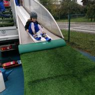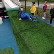V tednu otroka so drugošolci uživali tudi na napihljivih igralih. Sonček je dodatno poskrbel za dobro voljo in nasmeh na obrazih otrok. Učenci so izkoristili čas za skakanje, plezanje in dobro voljo. Kratek, a zabaven trenutek se jim bo gotovo vtisnil v spomin.